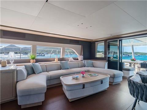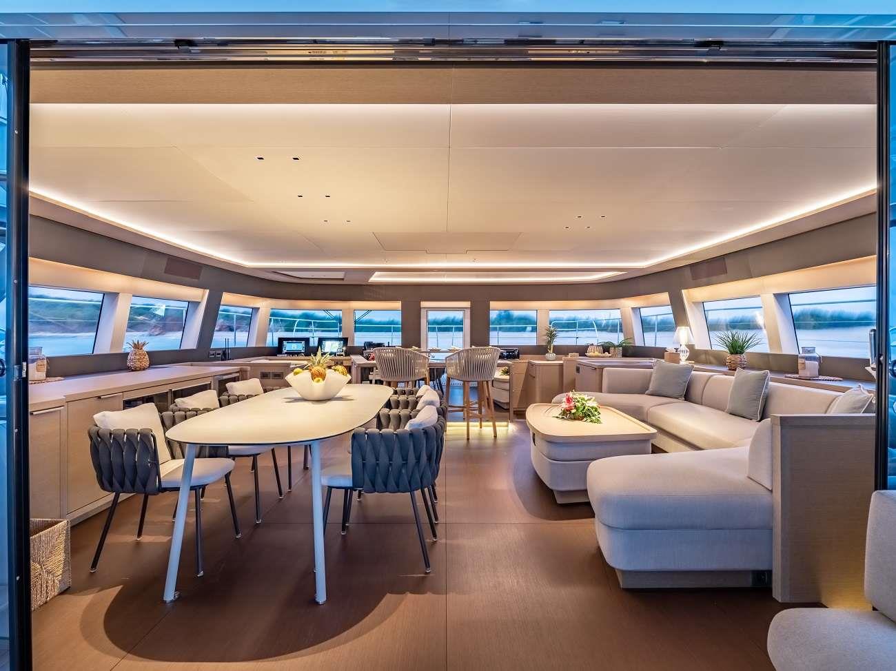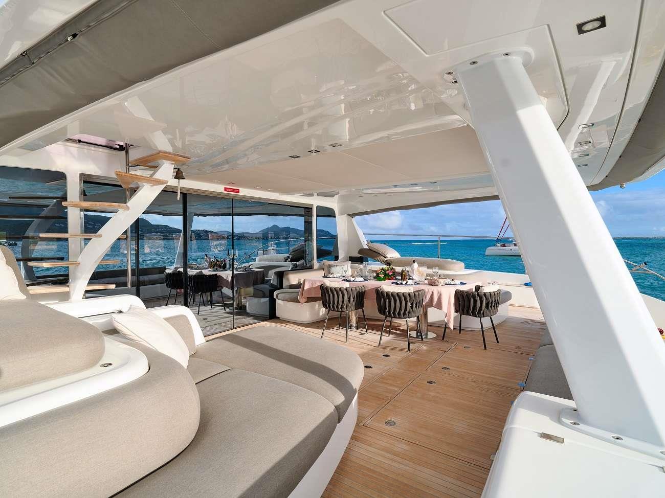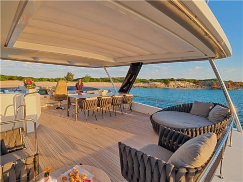 The exceptional deck area multiplies the living spaces and access to the sea.