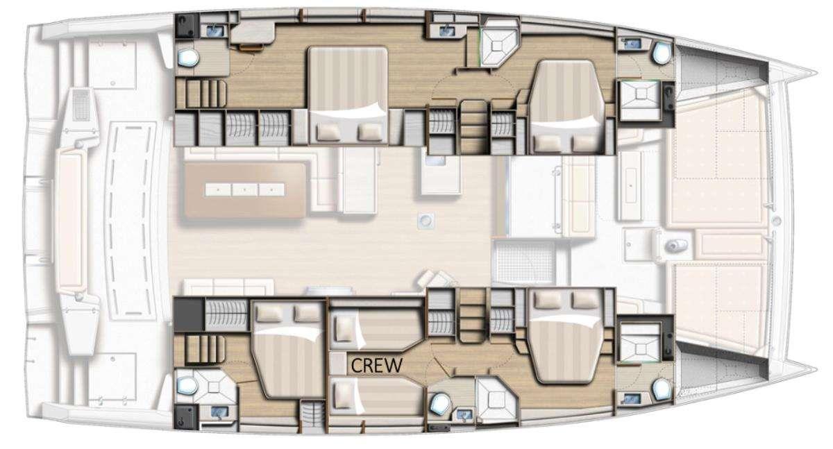 - An expansive master cabin with dual entrances to the saloon and one to the aft deck, jump straight into the Ocean from there!
