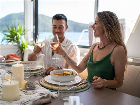 He enjoys sharing his passion with guests, whether that means helping curious sailors get behind the helm, revealing hidden local gems, flying the drone at golden hour, or finding a quiet anchorage for a starlit dinner.