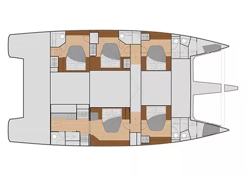 One master cabin with en suite bathroom and 4 queen bed cabins with private bathrooms