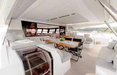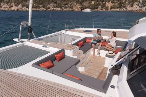 S/Y Allure 59 is a breathtaking Fountaine Pajot Samana 59, a sailing catamaran that perfectly captures the essence of luxury, space, and freedom. With her impressive 30m² flybridge — the largest in her category — she offers guests an exceptional blend of comfort, style, and performance, creating the ideal setting for unforgettable moments shared with family and friends.