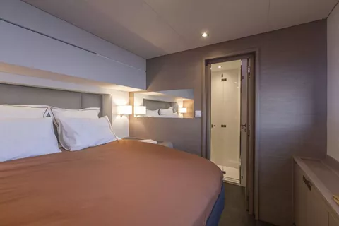 S/Y Allure 59 accommodates up to 10 guests in five equally luxurious double cabins, each featuring queen-size beds and private en-suite bathrooms. Designed for both privacy and comfort, every cabin offers natural light, modern finishes, and refined details that elevate the onboard experience.