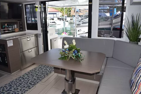 The interior design has modern contrasts, indirect and classy finishes bringing more luxury to this size vessel. With windows everywhere it ensures the natural light is amplified thoughout.