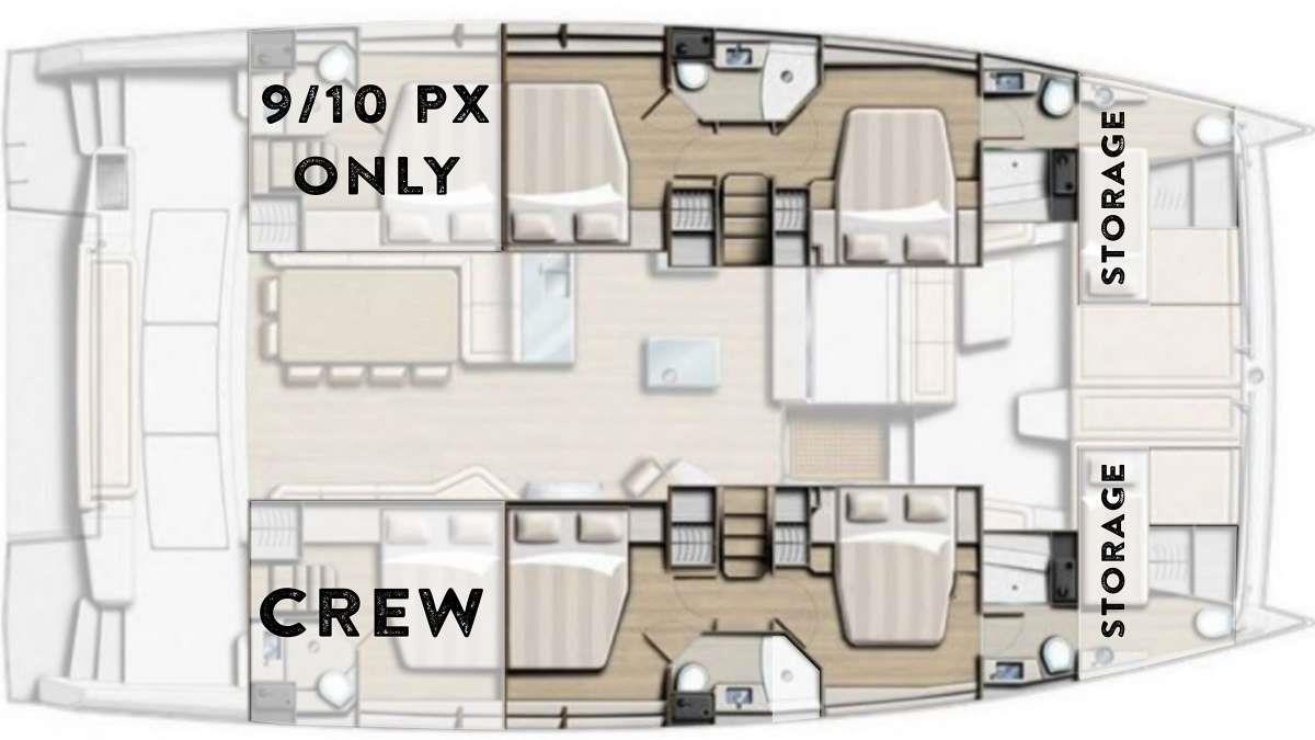 CREW RELOCATION: If an 8px charter would like the usage of the 5th cabin, an additional fee of $1,500 will be required to relocate the crew.