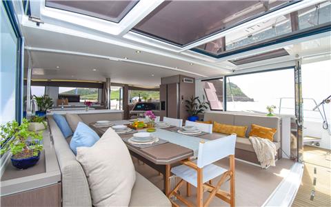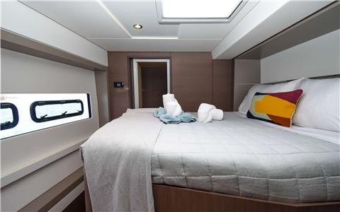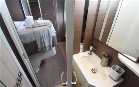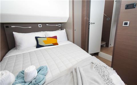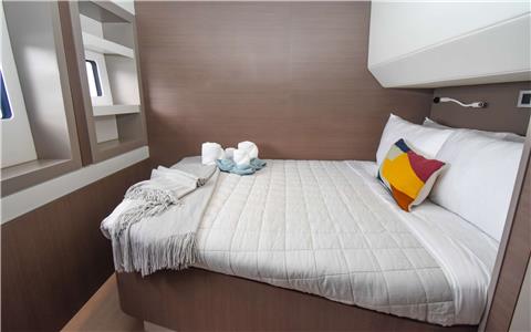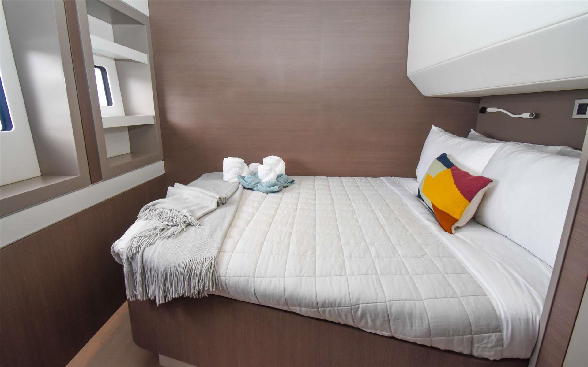 This brand new 2022 luxurious sailing catamaran, NAE KAE, is a superb example of what Bali can design. As you step on board in to a beautifully appointed cockpit, complete with teak floors and dining table for ten and a comfortable lounging bench, you immediately realize what a unique charter experience you are about to have. As you make your way up to the flybridge you’ll be blown away by the amazing turquoise water with 360° views and enjoy the up-close view of the sails. It’s also a great place to read your favorite book or a favorite spot for appetizers and cocktails at sundown. The main salon is comfortable and luxurious with open spaces and natural light fed by all the windows surrounding you. All guest cabins are spacious with large windows and offer plenty of natural light. For your comfort, every cabin offers queen sized beds and private baths with dedicated shower stalls as well as individual cabin A/C control. The high level of finishing throughout every cabin reflects the luxury that you would expect from a yacht of this caliber. With all the different areas, NAE KAE is show-stopper and has enough amenities for everyone to enjoy!