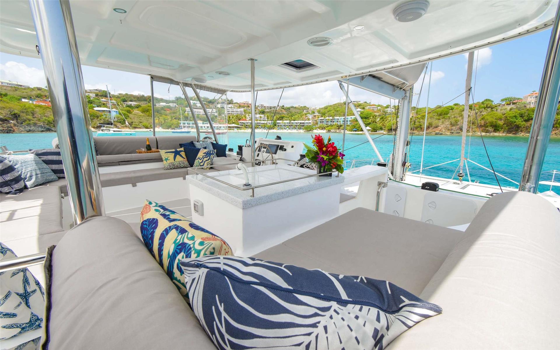Where Luxury meets adventure! Introducing Adventure Us, the latest Royal 57 Catamaran. Indulge in the Crystal clear waters of the Virgin Islands on this ultra-spacious sailing Catamaran. Adventure Us features a flybridge that has 360-degree ocean views. The flybridge sports a fully functioning bar and easy access to several sun pads to soak up the Caribbean sun.