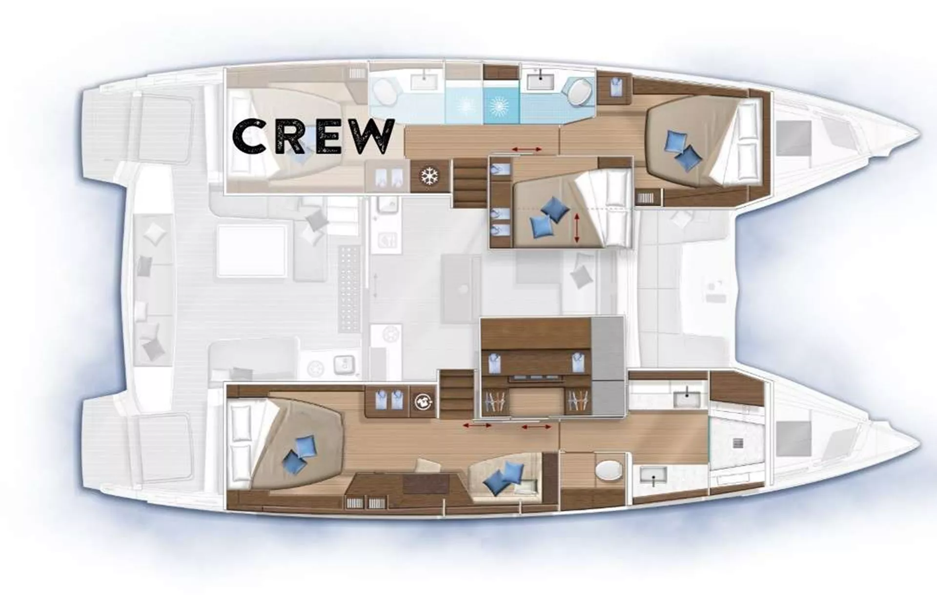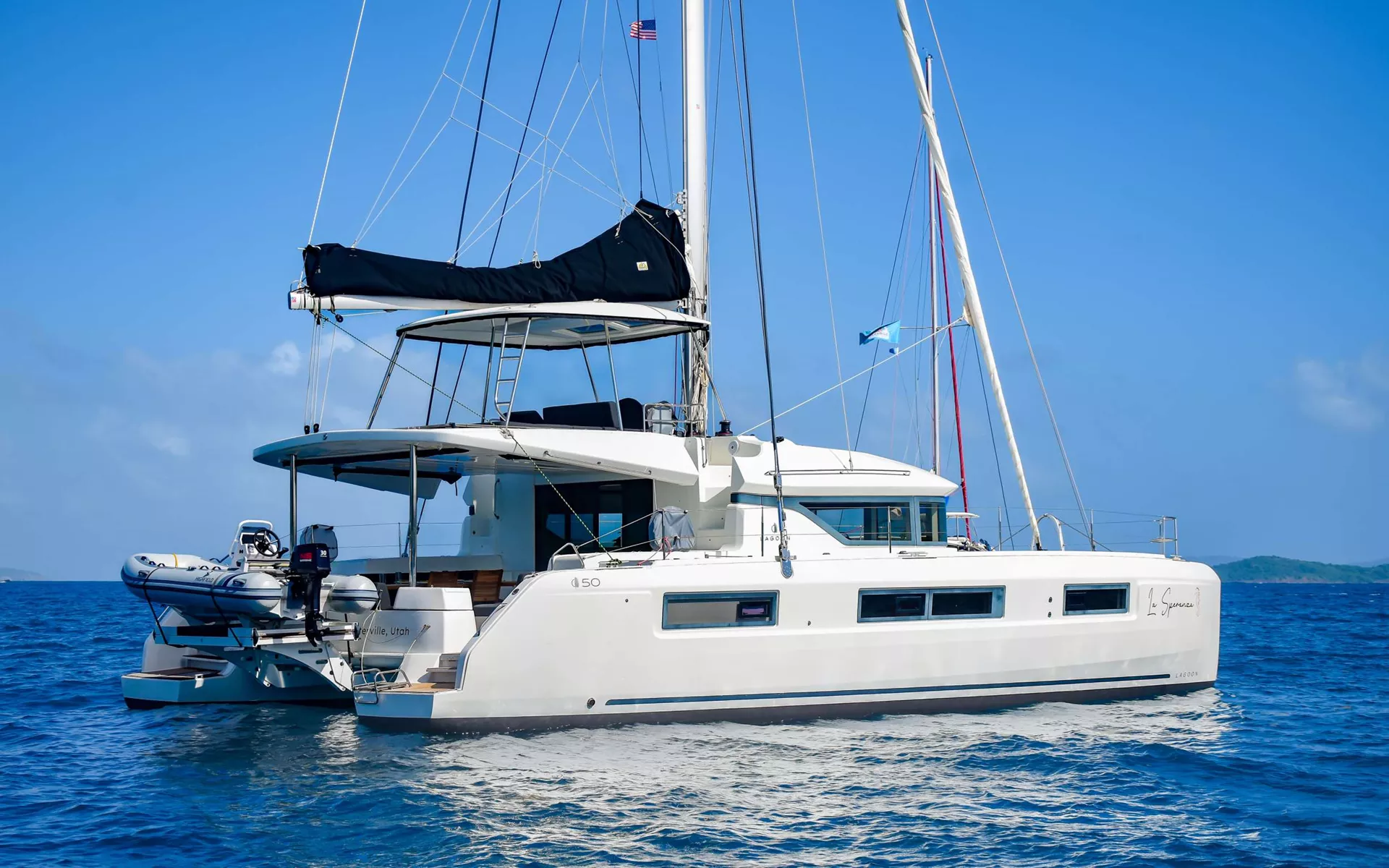 LA SPERANZA is a Captain360 2020 50’ Lagoon sailing catamaran that feels bright, breezy, and effortlessly comfortable for Caribbean charters. Sleeps 6 across 3 cabins: a full-beam Owner’s suite to starboard plus 2 Queen cabins to port (including a midship Queen). The Owner’s suite has a private ensuite, and the two Queen cabins share an ensuite bathroom. Natural light and ventilation are excellent throughout, with full A/C when you want it. The flybridge is a crowd favorite and fits the whole group, while the aft deck is set for open-air dining for 6, with top-deck seating, a lounge forward of the helm, and a front lower deck lounge behind the trampolines. Expect timeless on-the-water fun and easy island flow. LA SPERANZA is pure laid-back luxury.
