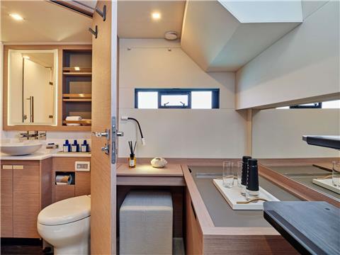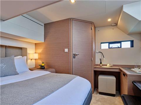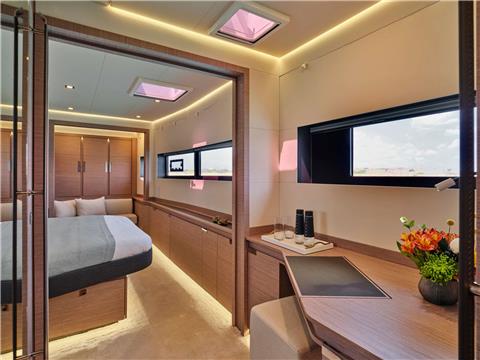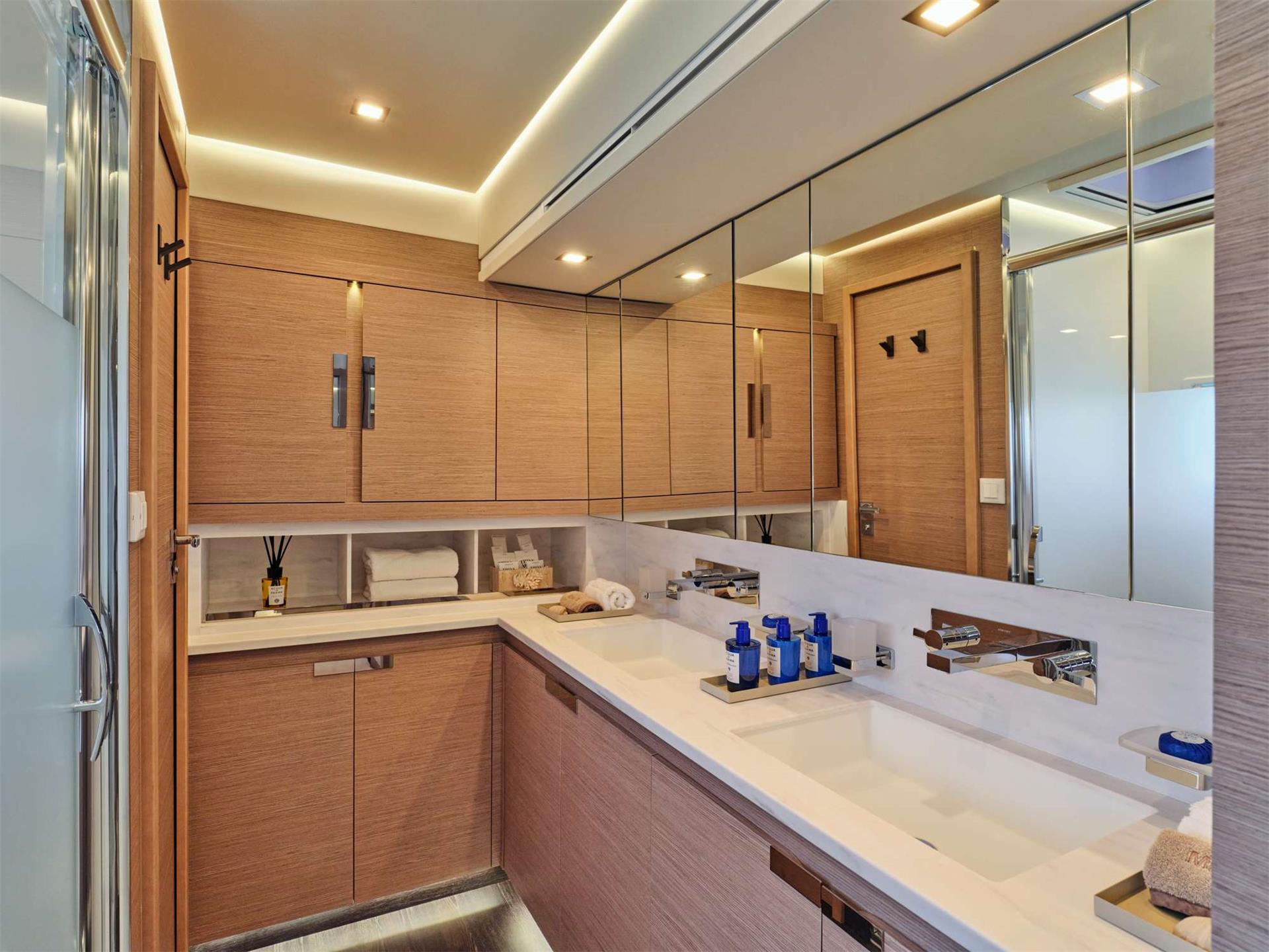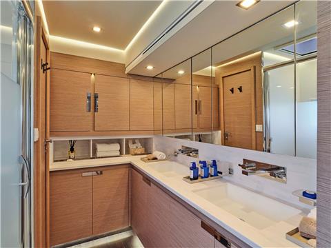 Her owner's suite offers a 22-m2 private apartment is fitted with a huge dressing room and an Italian-style bathroom with an Italian-style bathroom with two finely designed washbasins to give all the distinction you can imagine to your outings at sea.