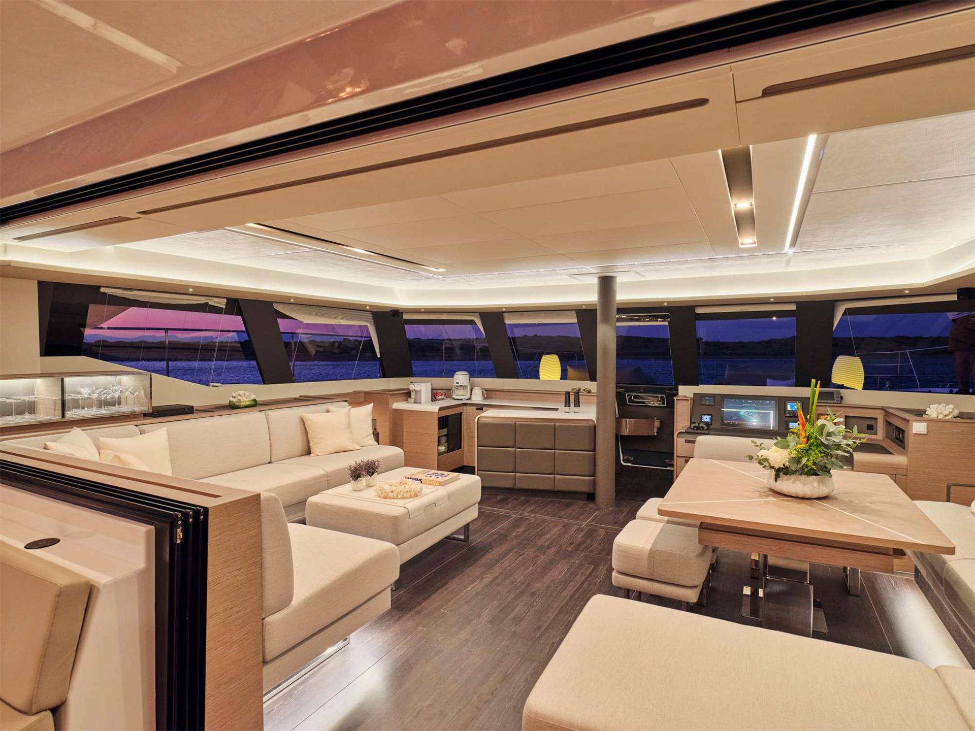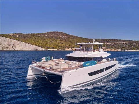 Elegant and inventive, M/Y ELLY offers a state-of-the-art living environment. This luxury power catamaran's rounded, asymmetrical lines exude courage. Its volumes are cleverly designed and large. Enjoy the 36m2 cockpit and lounge.