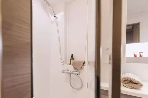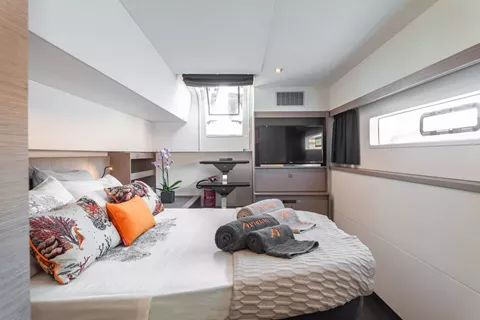 Maestro cabin with queen-size bed (160 x 200), TV screen 32'' multimedia, and en-suite bathroom.