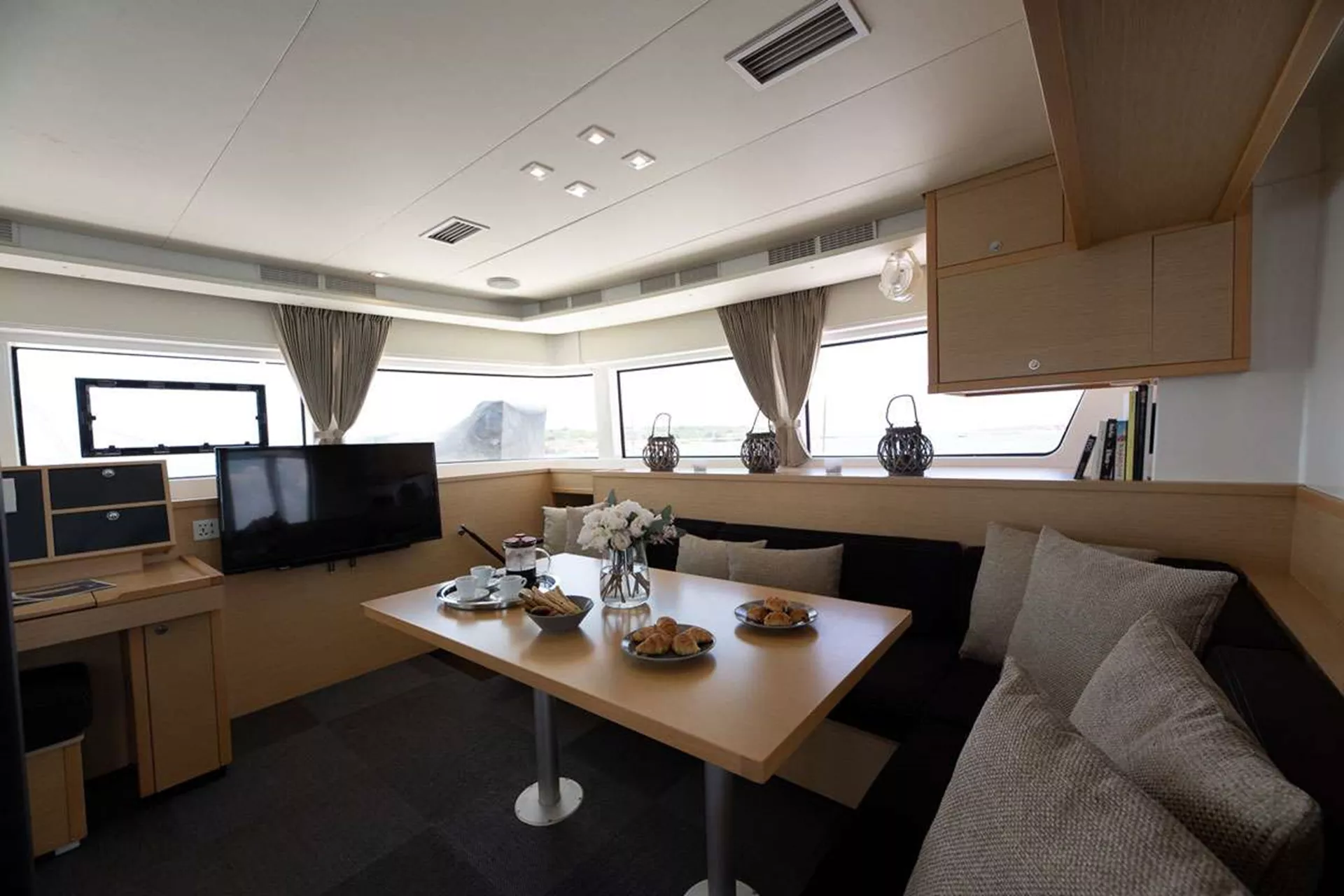 Royal Flush is a Lagoon 52 catamaran, built in 2017 and totally refitted in 2022. She can accommodate up to 12 guests in 6 en-suite cabins, of which 5 are Double and 1 Twin with upper and lower bunk beds. She offers 3 different spaces for the guests to relax, these would be the cockpit, the forward salon and the flybridge. Equipped with all the amenities of a floating hotel in combination with a professional and experienced crew of 2, surely she will offer you a great vacation experience.
