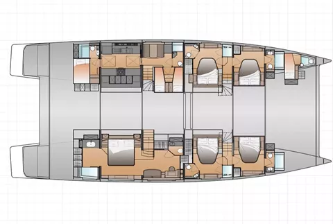 Inside, you'll find a strikingly modern and incredibly spacious interior that exudes comfort and luxury at every turn. The yacht boasts a total of five cabins, including a lavish owner's suite, and four queen-sized cabins, all of which come with their own private bathrooms and a galley down. This ensures that every guest on board enjoys the utmost privacy and convenience.