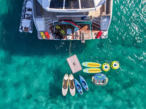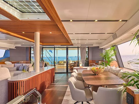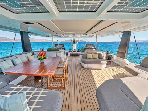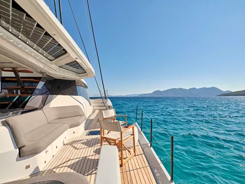 Step aboard the NEW Fountaine Pajot 80 S/Y ALOIA 80 and experience the epitome of luxury in a catamaran. With its spacious flybridge offering an authentic ocean terrace and a forward cockpit with ample seating, this vessel is designed to provide the ultimate in relaxation and enjoyment. Whether you want to feel the thrill of sailing or simply unwind on the decadent lounges and sunbathing beds, S/Y ALOIA 80 has it all.