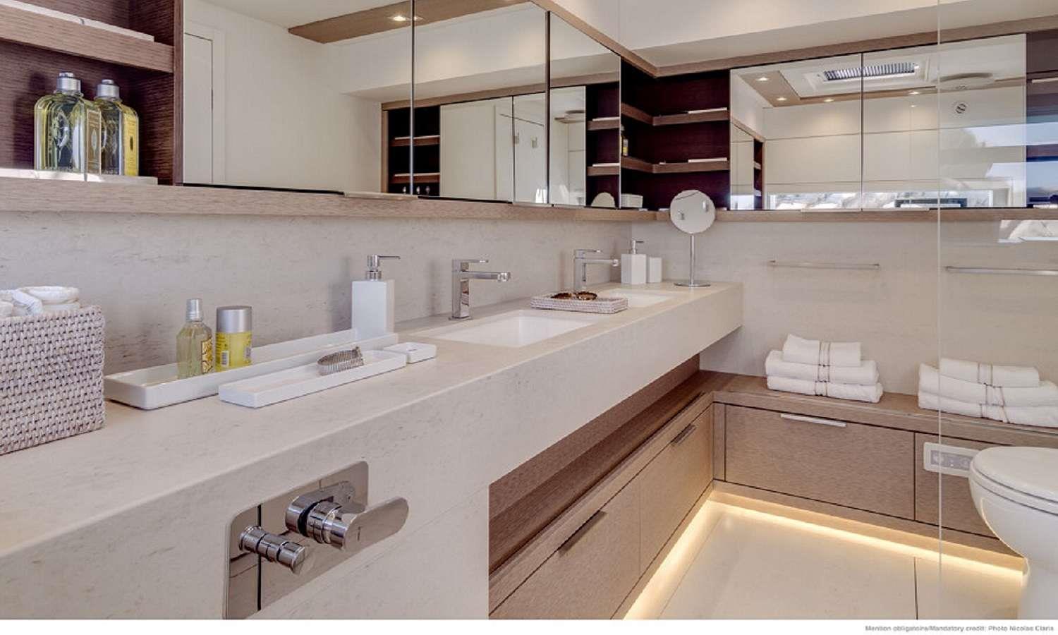 - 1 master cabin with private terrace on the sea & an ensuite spacious bathroom, large sofa & walk-in dressing - bed size 1,80 m x 2,05 m