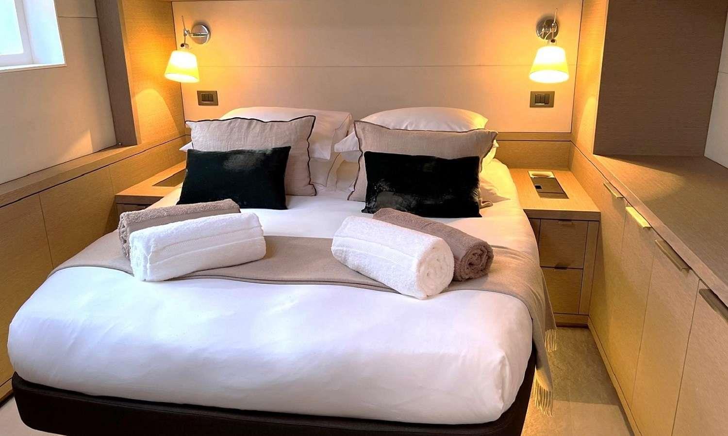 - 1 double cabin with a smaller private bathroom convertible into twin - located at front port of the vessel - bed size 1,70 m x 2,05 m