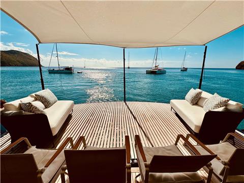 Consuming only wind, sunlight and sea water, One Planet delivers a 5-star experience to 8 guests pampered by a professional crew of 4. With the size of a tennis court, she is an exclusive eco-friendly retreat on the water, with total privacy, full silence, ultimate comfort, high-tech amenities and Michelingrade organic, locally-sourced cuisine.