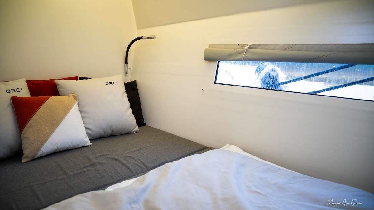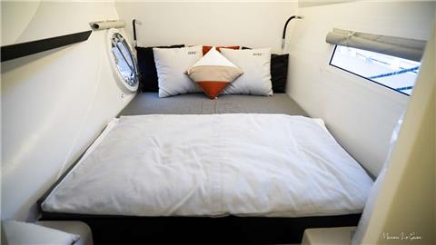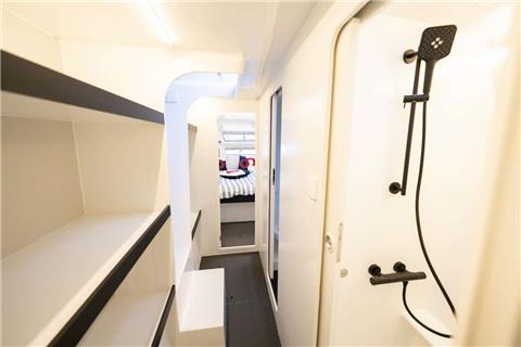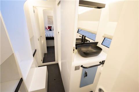 Cabins share heads. One on starboard one on port. Crew cabins are in the forepeak.