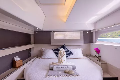 With comfortable cabins, private showers, and an open layout, this Leopard 50 luxury catamaran in the pristine British Virgin Islands is the ultimate setting to truly unwind. Enjoy nutritious, mouthwatering cuisine at the spacious onboard dining table. Sip coffee and fresh juice in the morning, and cocktails, beer, and wine in the evening.