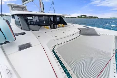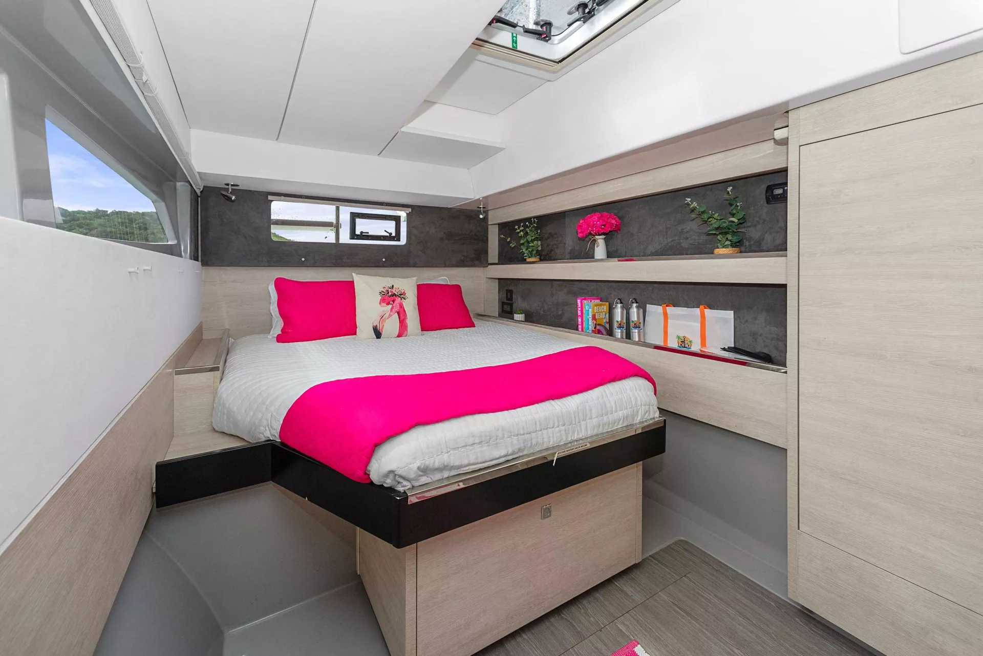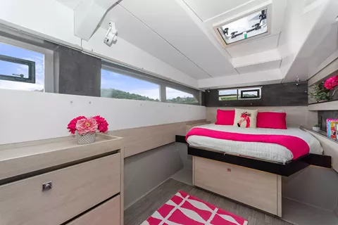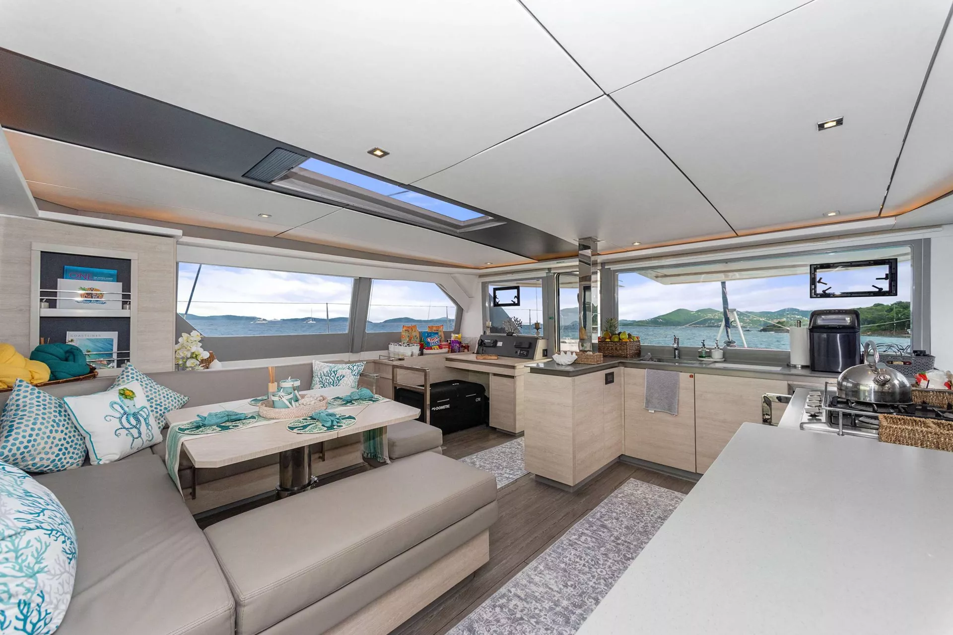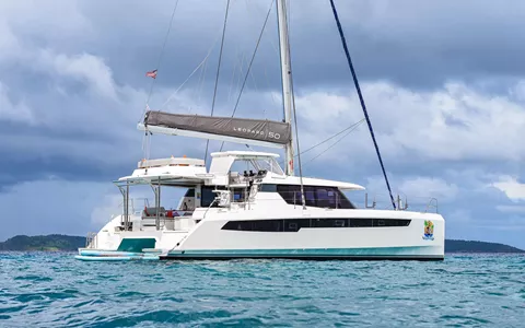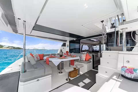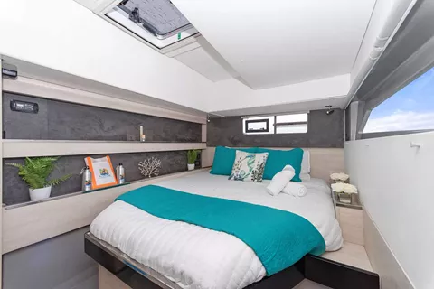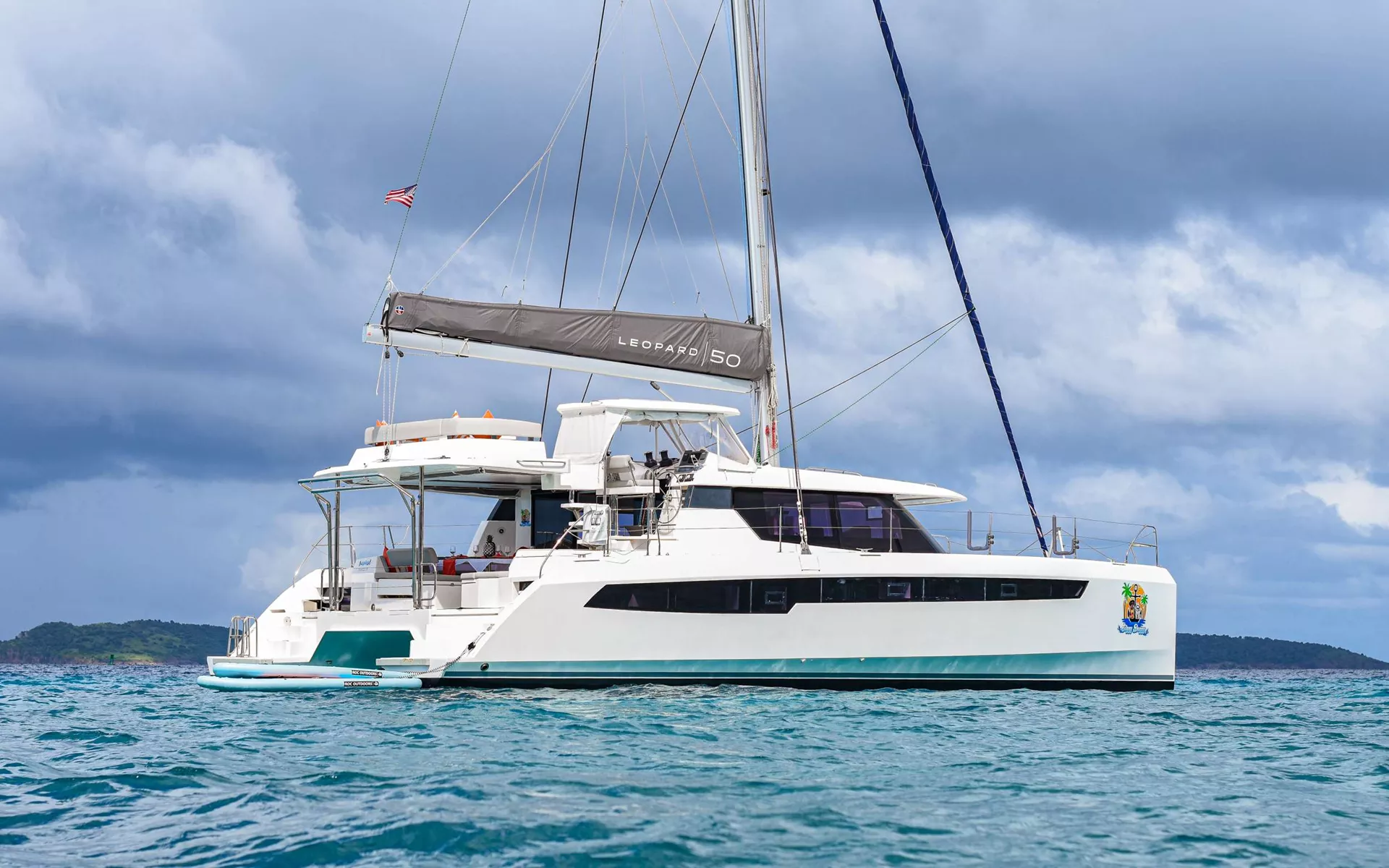 Crafted with versatility at its core, we present the next evolution of Leopard Catamarans: the Leopard 50. This vessel is set to succeed one of the most iconic and best-selling models in our fleet, the award-winning Leopard 48. The Leopard 50 boasts an optimal layout for enthusiasts of open-air living. It features a flybridge replete with a lounge area, table, sunbed, and options for external speakers and a shade awning. Floating stairs from the aft cockpit ensure easy access. What sets this flybridge design apart from others in its class is the spaciousness; even under sail, passengers can roam the flybridge with generous headroom, free from any hindrance by the boom. Moreover, the flybridge's positioning ensures continuous engagement with the helm station, a signature touch found in all Leopard Catamarans.