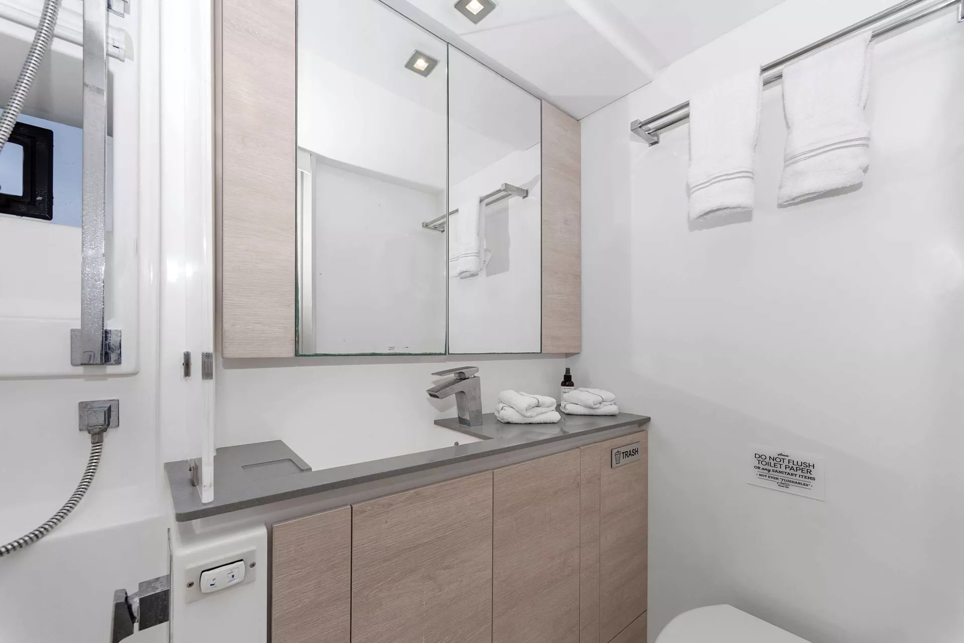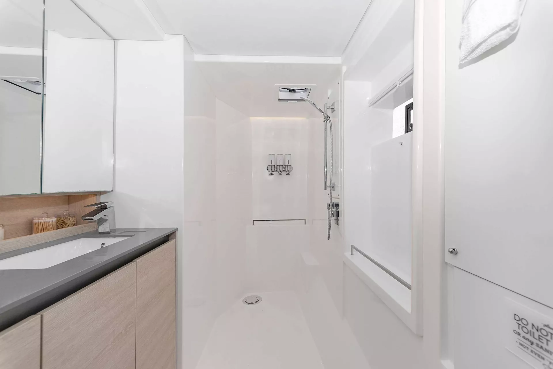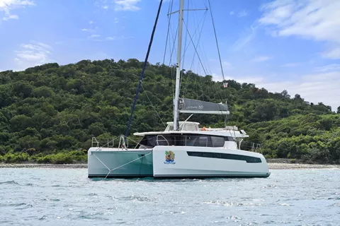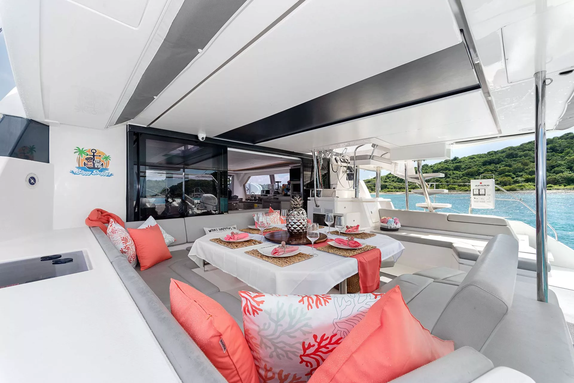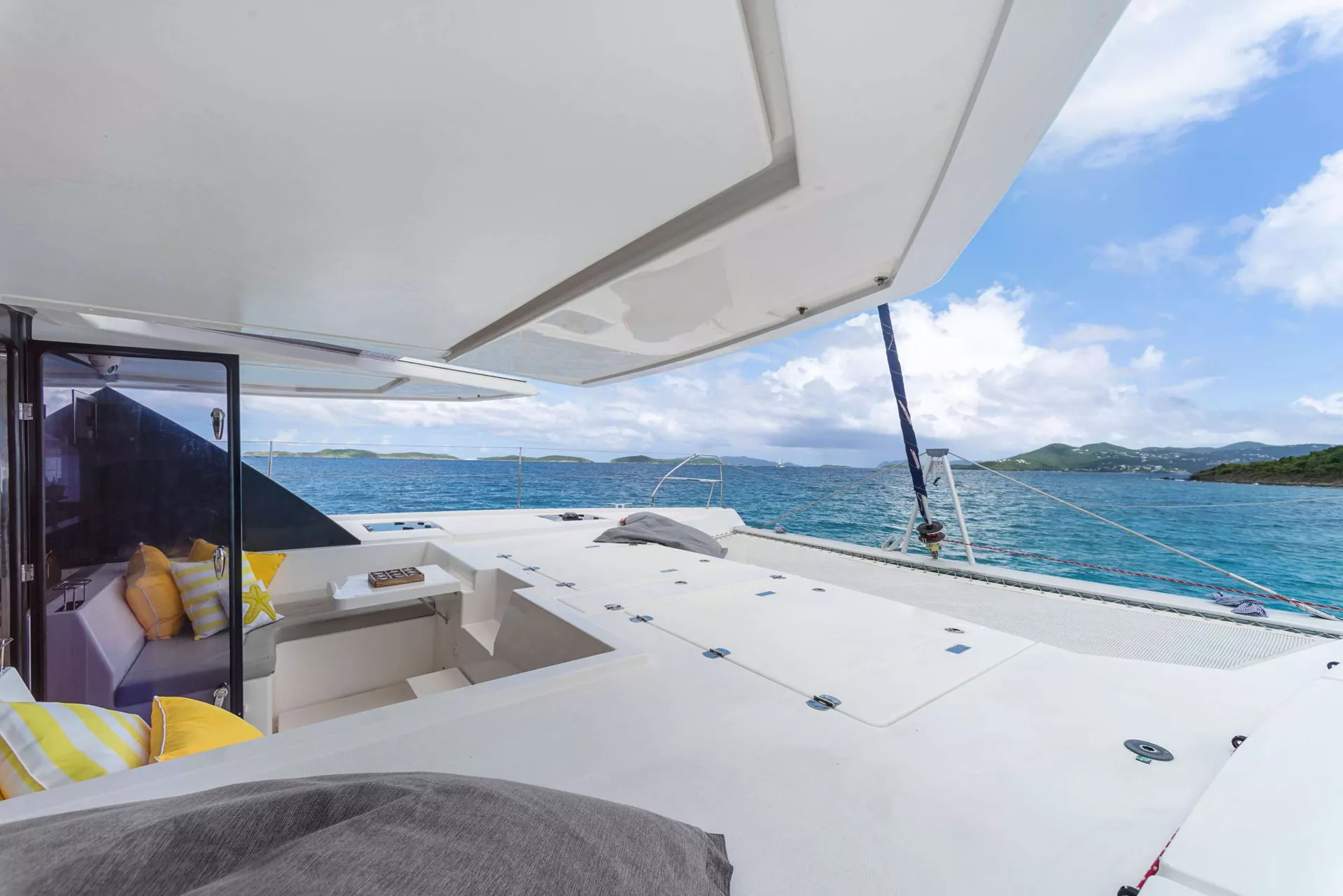Crafted with versatility at its core, we present the next evolution of Leopard Catamarans: the Leopard 50. This vessel is set to succeed one of the most iconic and best-selling models in our fleet, the award-winning Leopard 48. The Leopard 50 boasts an optimal layout for enthusiasts of open-air living. It features a flybridge replete with a lounge area, table, sunbed, and options for external speakers and a shade awning. Floating stairs from the aft cockpit ensure easy access. What sets this flybridge design apart from others in its class is the spaciousness; even under sail, passengers can roam the flybridge with generous headroom, free from any hindrance by the boom. Moreover, the flybridge's positioning ensures continuous engagement with the helm station, a signature touch found in all Leopard Catamarans.