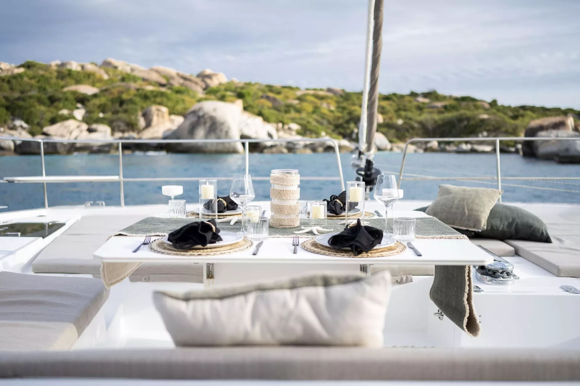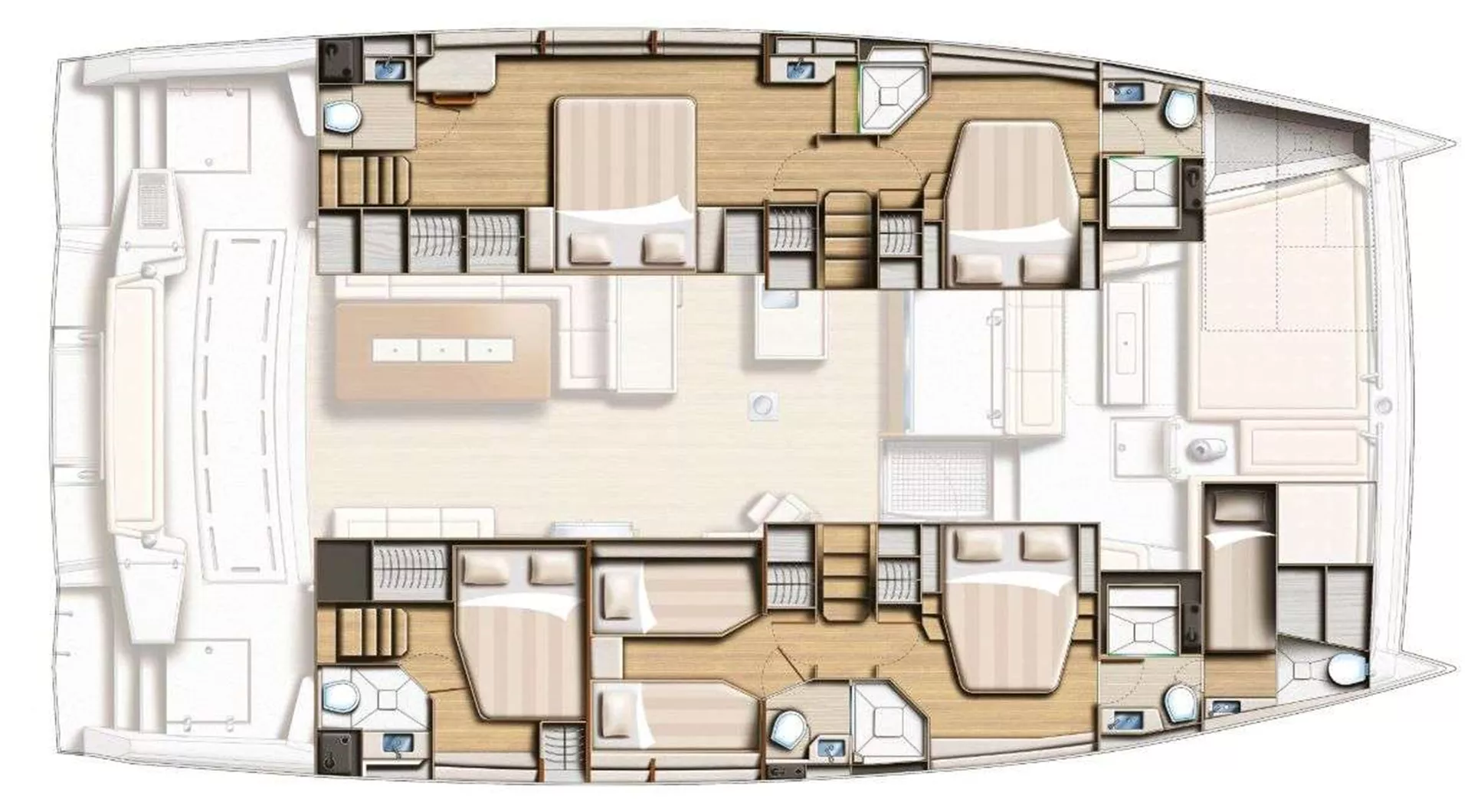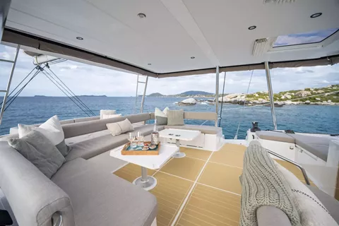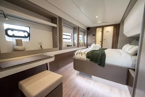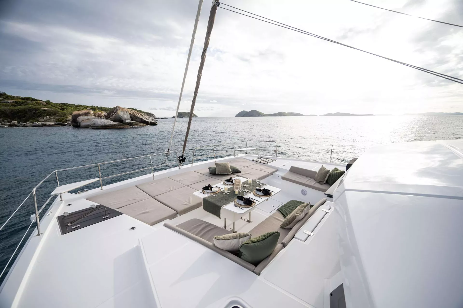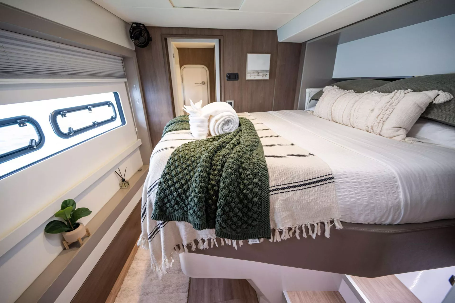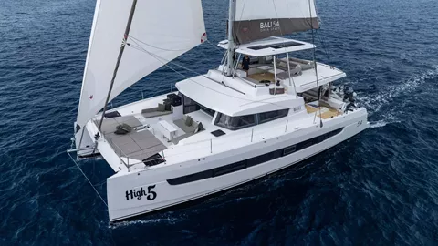 High 5 will accommodate 8 charter guests in 3 spacious queen cabins and 1 sprawling master cabin for those who desire more space. She is a 2023 sailing catamaran offering Starlink, 70 HP tender, a hard top, hydraulic lift, SeaDek, solar panels, air conditioning, water maker, ice maker, full sized refrigerator, a fully customizable menu, ecofriendly and reef safe toiletries, a bar stocked to guest preference, coffee/espresso machine, rendezvous scuba diving, snorkeling gear, underwater scooters, subwing, wakeboard, 2 stand up paddle boards, 10 ft. floating dock, pool noodles, fishing gear, board and card games, television in the salon, Fusion 3 Bluetooth enabled sound system and High 5 giveaways.