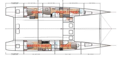 Hull layouts start with the owner’s lifestyle – a VIP cabin and desires for additional personal space such as an office – and proceed with accommodations in multiple guest cabins for up to 8 passengers (6 adviced) and separate quarters for 3 crew. The interior of the Gunboat 72 is dynamic and bright, pure and inviting.