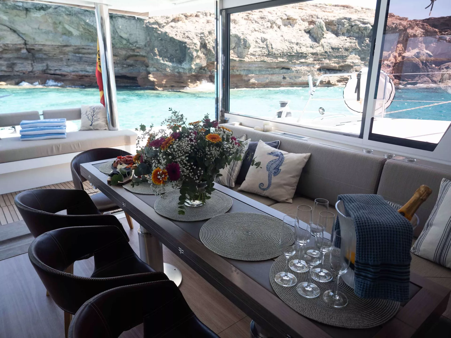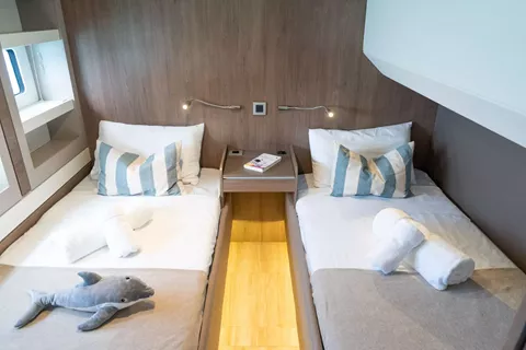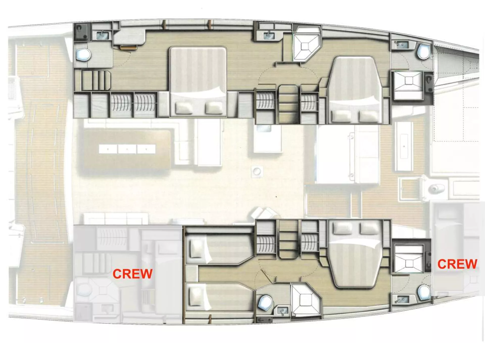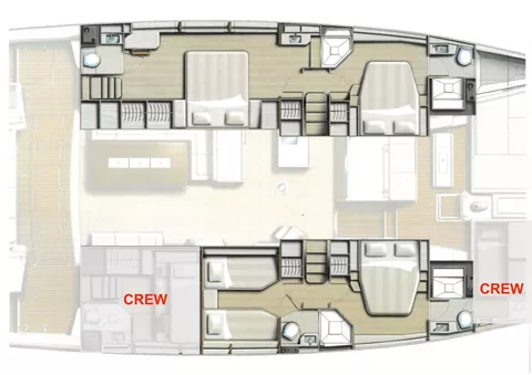 CREW: 1 forepeak + WC, 1 aft starboard cabin + WC