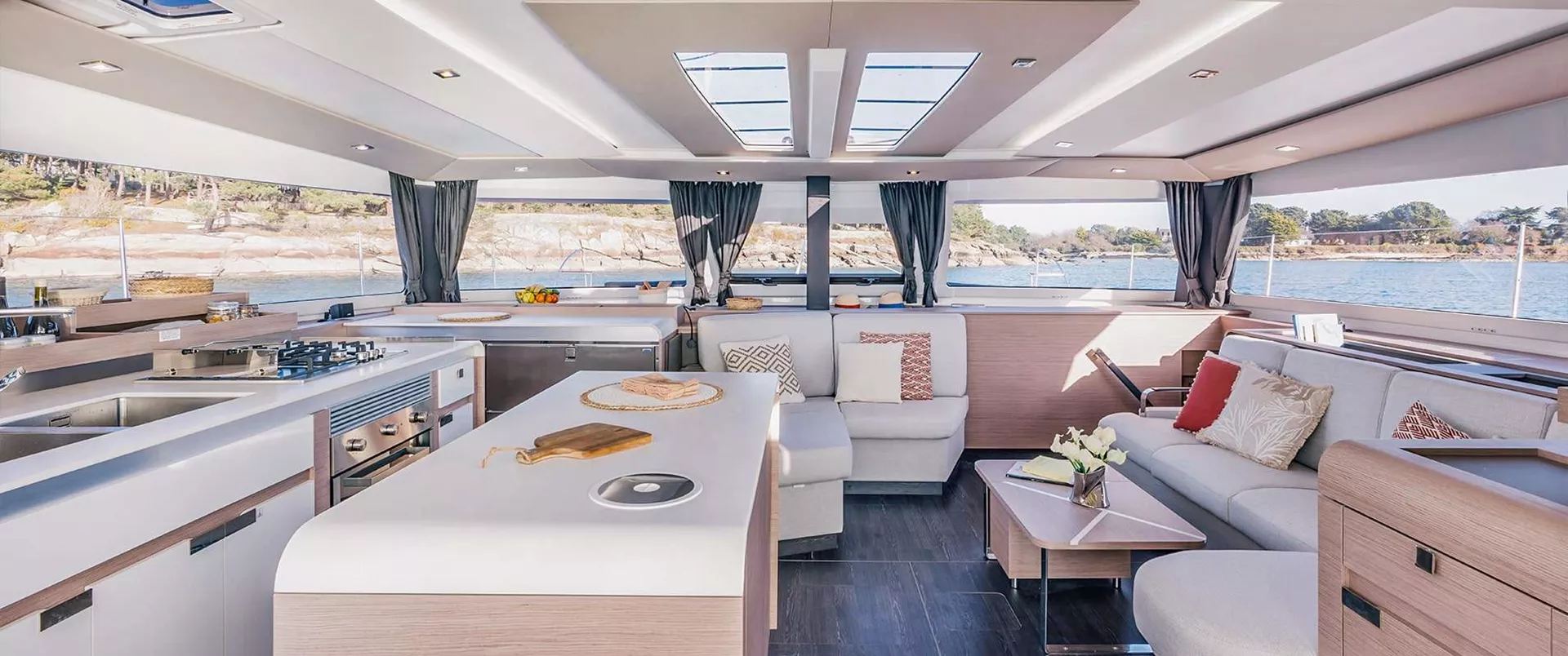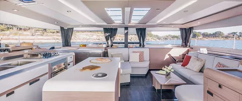Aura 51 Ocean Eye is one of the most luxurious and modern catamarans on the Adriatic Sea managed by enthusiastic Polish owners. In his category belongs to TOP 3 best catamarans in Croatia available for charter. In hotel terminology, this catamaran is a floating 5***** hotel. This elegant beauty on the water and with high levels of performance, also offers a splendid place to relax with its carefully crafted Lounge deck. This is integrated into the design process from the very beginning in order to give the craft its beautiful lines as well as the best possible levels of comfort, both at sea and at mooring. Motion on board has been designed to ensure privacy between saloon, front or rear deck or Lounge deck on the top floor. Aura 51 Ocean Eye is ideal for multigeneration families, students and young people which wish to experience unforgettable sailing party. Alternatively it can perfectly fit for business partners arranging teambuilding for their clients and employees.