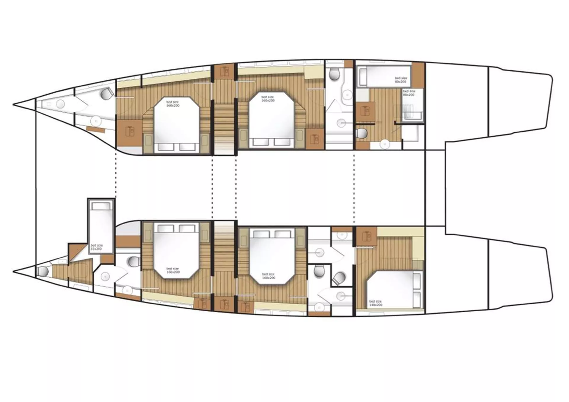 With a well thought out layout, plenty of space available on all decks and her five very spacious en-suite double cabins, this boat will be a great platform for your sailing holidays.
