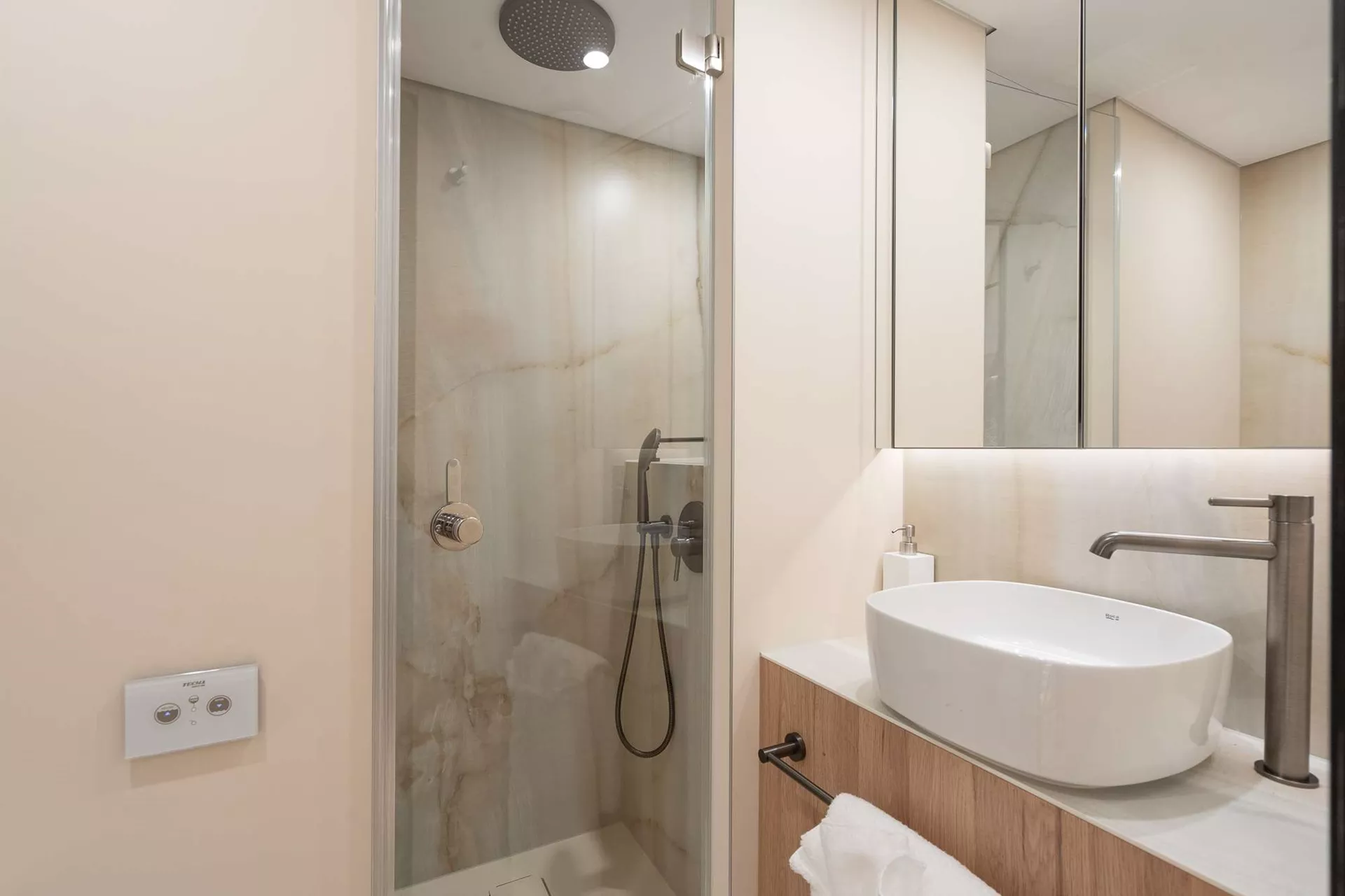 Each stateroom features a spacious ensuite with modern fittings, walk-in showers, and refined finishes. Thoughtful amenities and luxury toiletries are provided to enhance your onboard experience.
