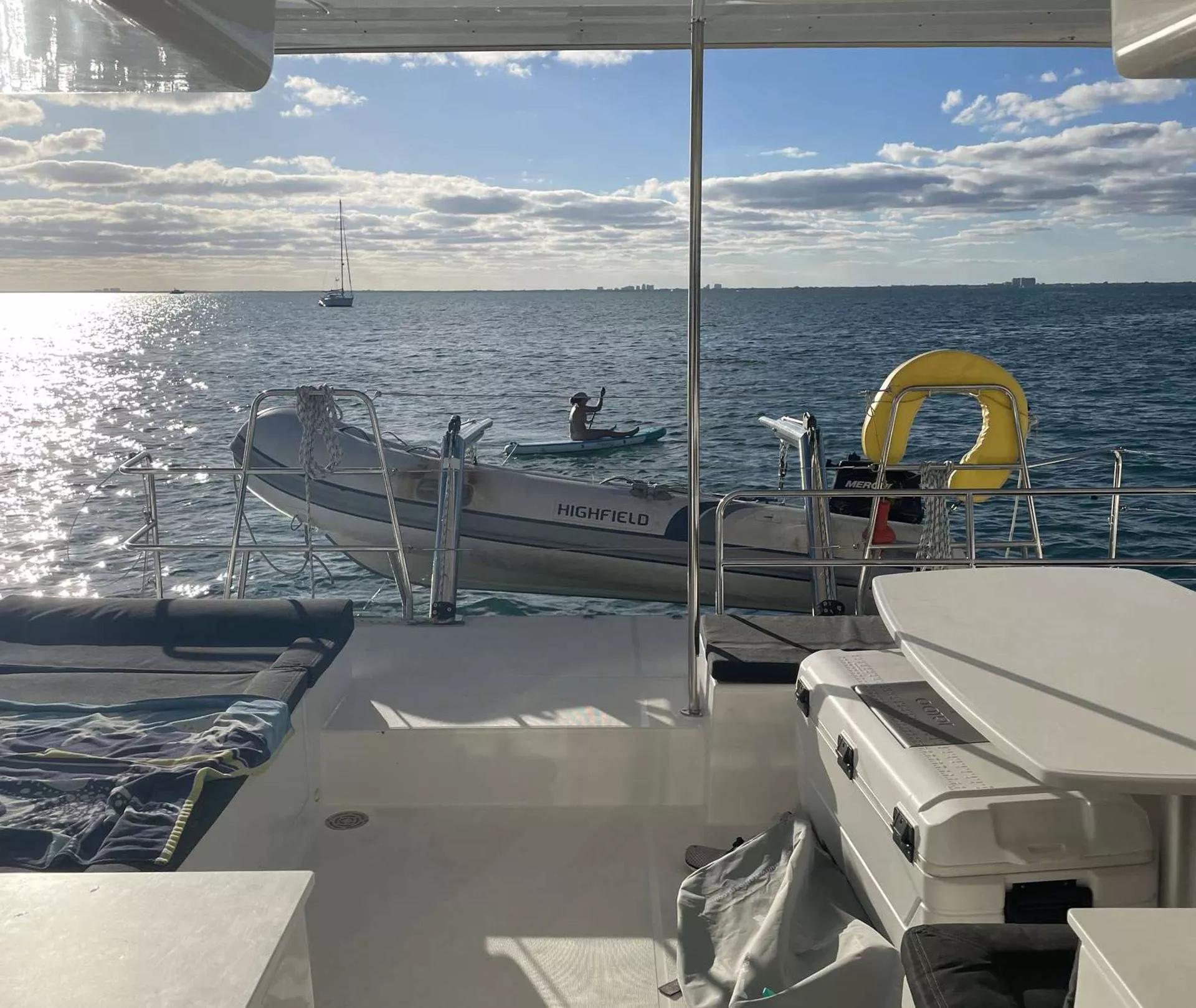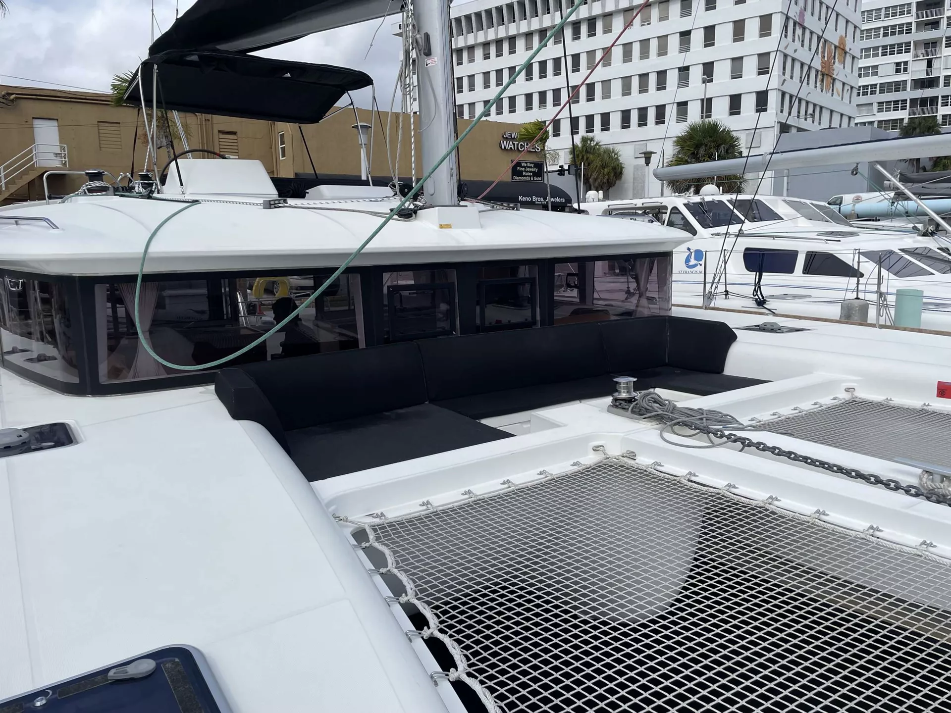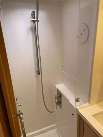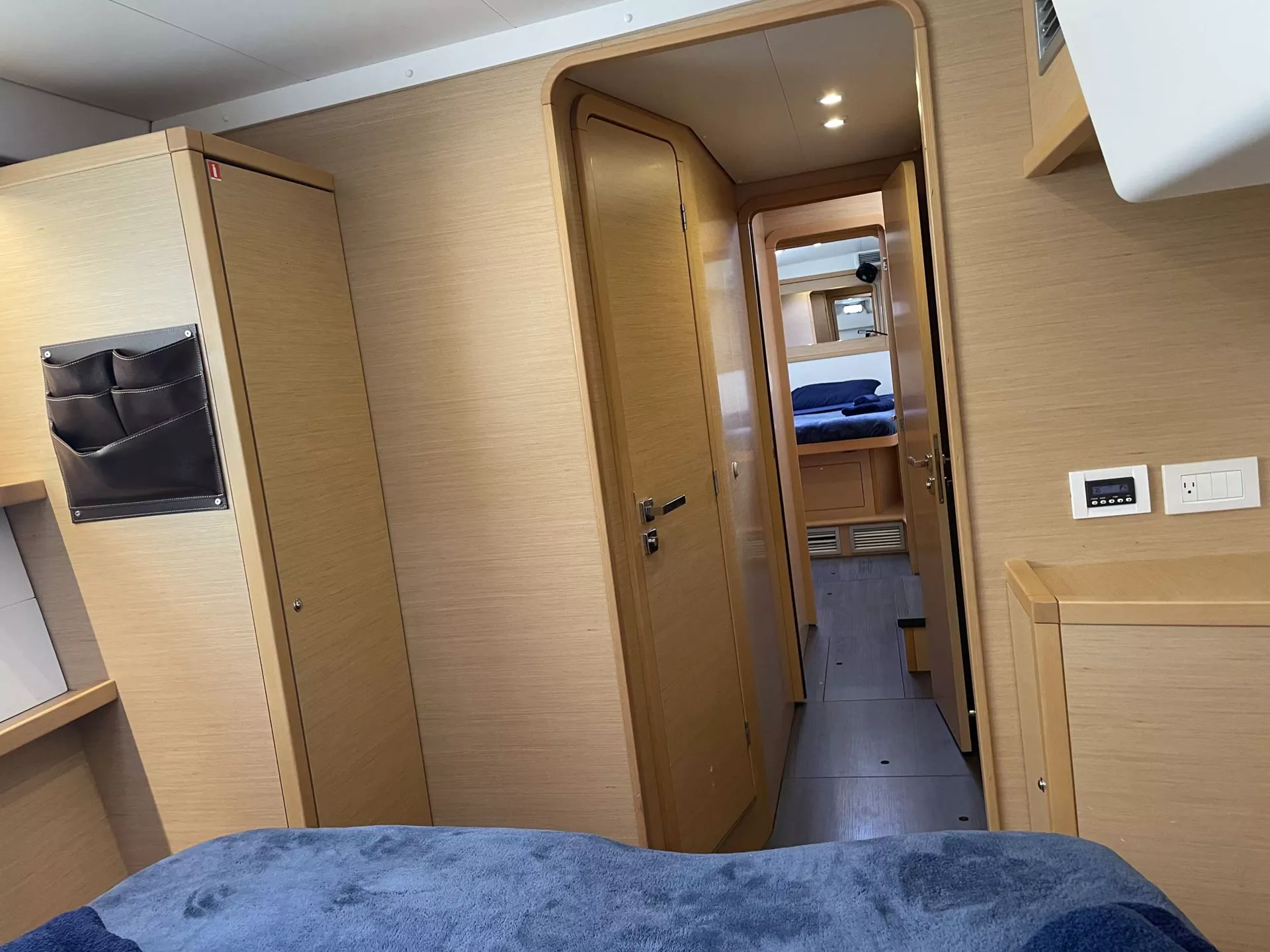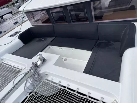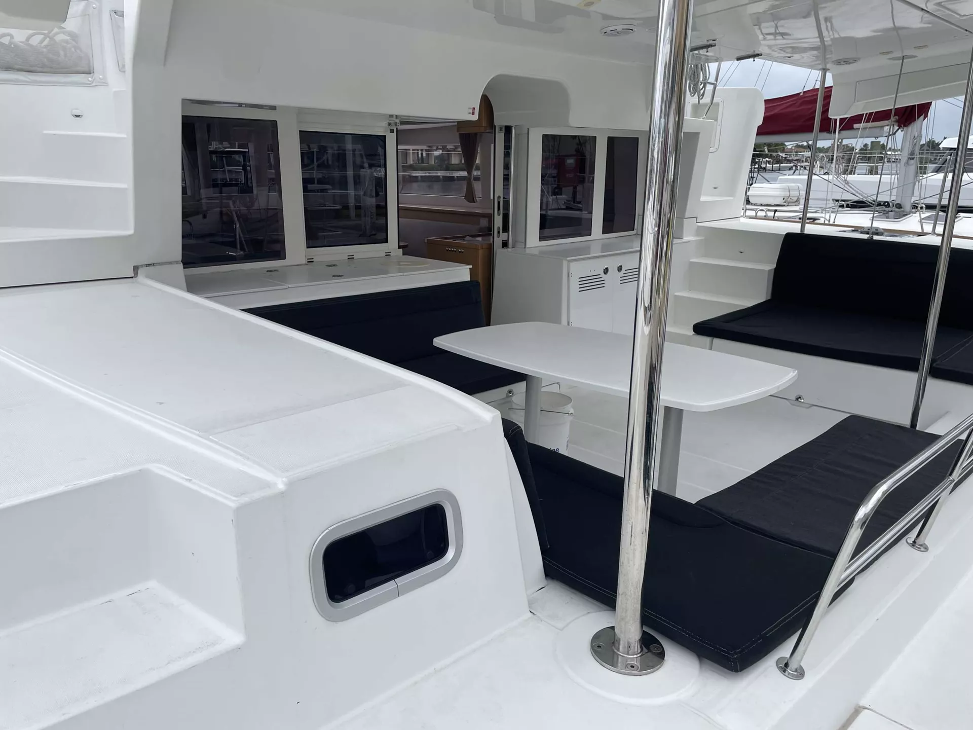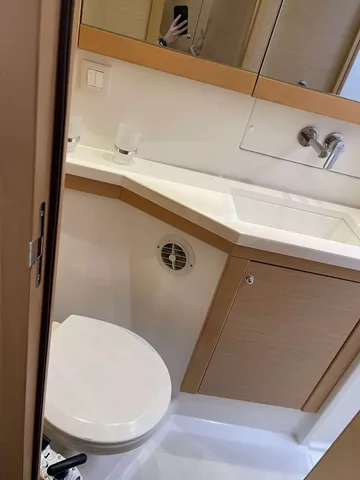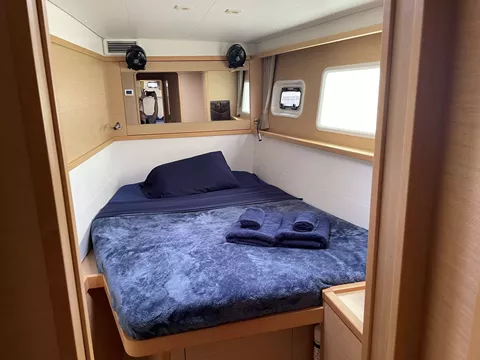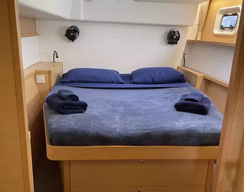 THREE CABINS FOR GUESTS EACH WITH INDIVIDUAL BATHROOMS. FORWARD OUTSIDE SEATING AREA AS WELL AS SPACIOUS COCKPIT WITH OUTSIDE BEVERAGE REFRIDGERATOR.