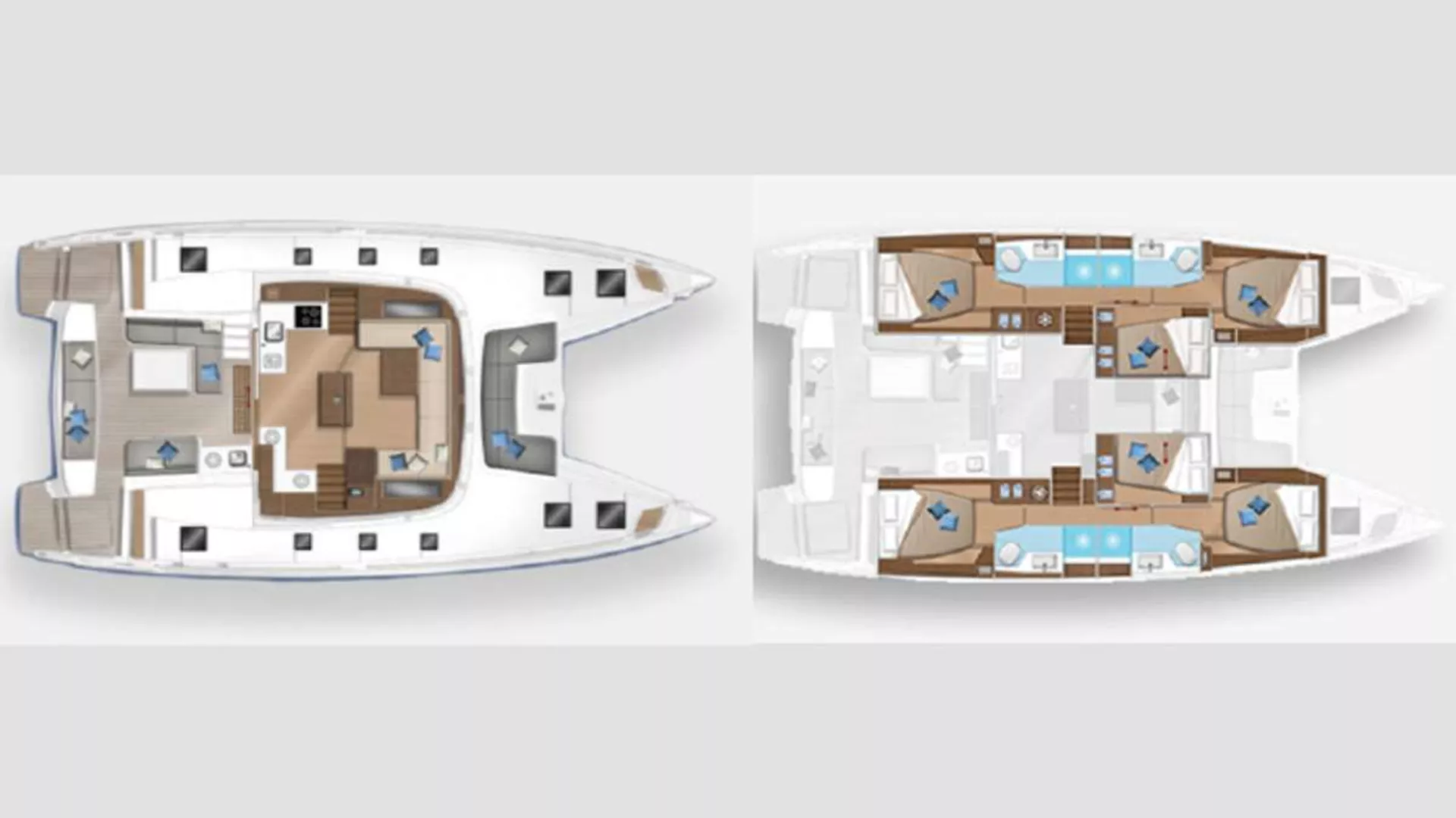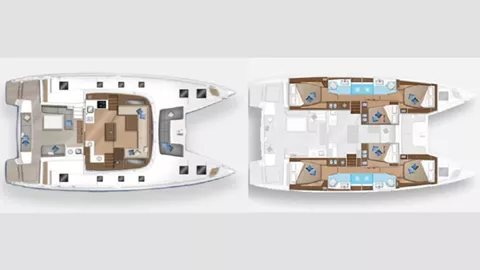 With a configuration optimized for charters, Swan offers accommodation in 4 queen size cabins and 4 en-suite heads to comfortably welcome up to 8 guests. Featuring full A/C in all cabins and the saloon area and dual 110v/220v sockets, Swan carries the latest safety and comfort equipment. The saloon area features a large table and sitting area for indoor entertainment as well as a fully equipped kitchen with several fridges and freezers. Lagoon innovative design offers great use of the space to cater for large groups. Guests can choose to relax in the spacious cockpit, on the large sunbeds of the flyover deck, or on the seating areas at the bow. Every inch of the boat is designed with the guests’ comfort in mind.
