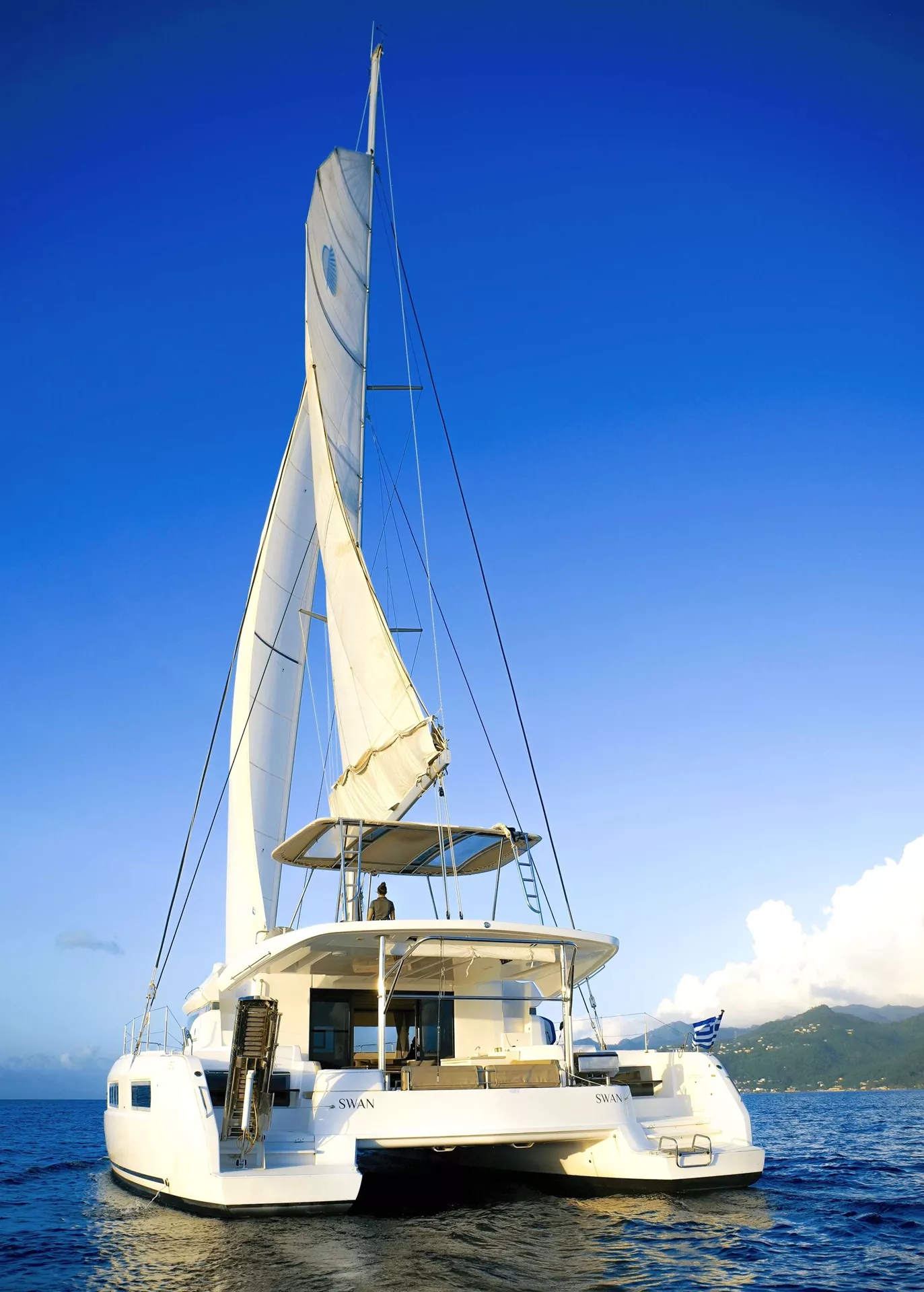 We are pleased to introduce SWAN a Lagoon 50. Lagoon designs their catamarans with chartering in mind, showcasing their extensive expertise from the moment you set foot on deck. Every detail of the Lagoon 50 has been meticulously planned with the perspective of a charter holiday in mind. Whether you enjoy basking under the sun with a book or prefer actively assisting the skipper at the helm, sailing the islands becomes a delightful experience aboard this opulent sailing catamaran.