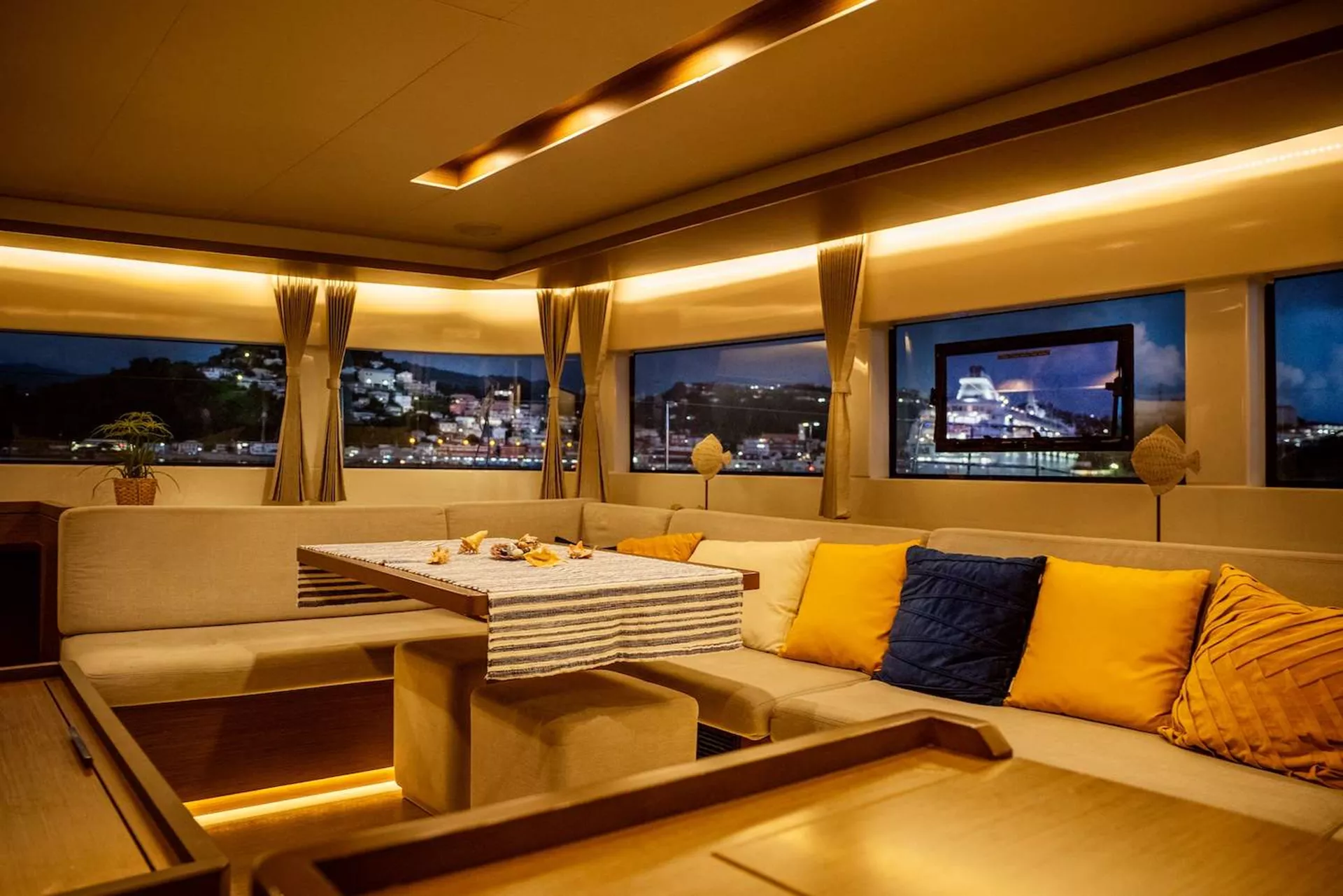 Swan comfortably accommodates 8 guests in a brilliantly designed space that optimizes every inch on board. Prepare to be astonished by how efficiently she creates a bright, spacious, and comfortable atmosphere for her guests. Packed with amenities, from a generator-operated air-conditioning system to an external BBQ grill, Swan ensures a journey filled with comfort and convenience. You and your party will enjoy hotel-like amenities throughout your stay.