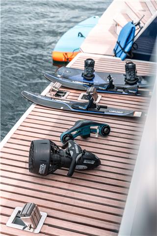 A wide range of water sports including seabobs, paddles, water skis and wakeboard completes the equipment of this exceptional catamaran.