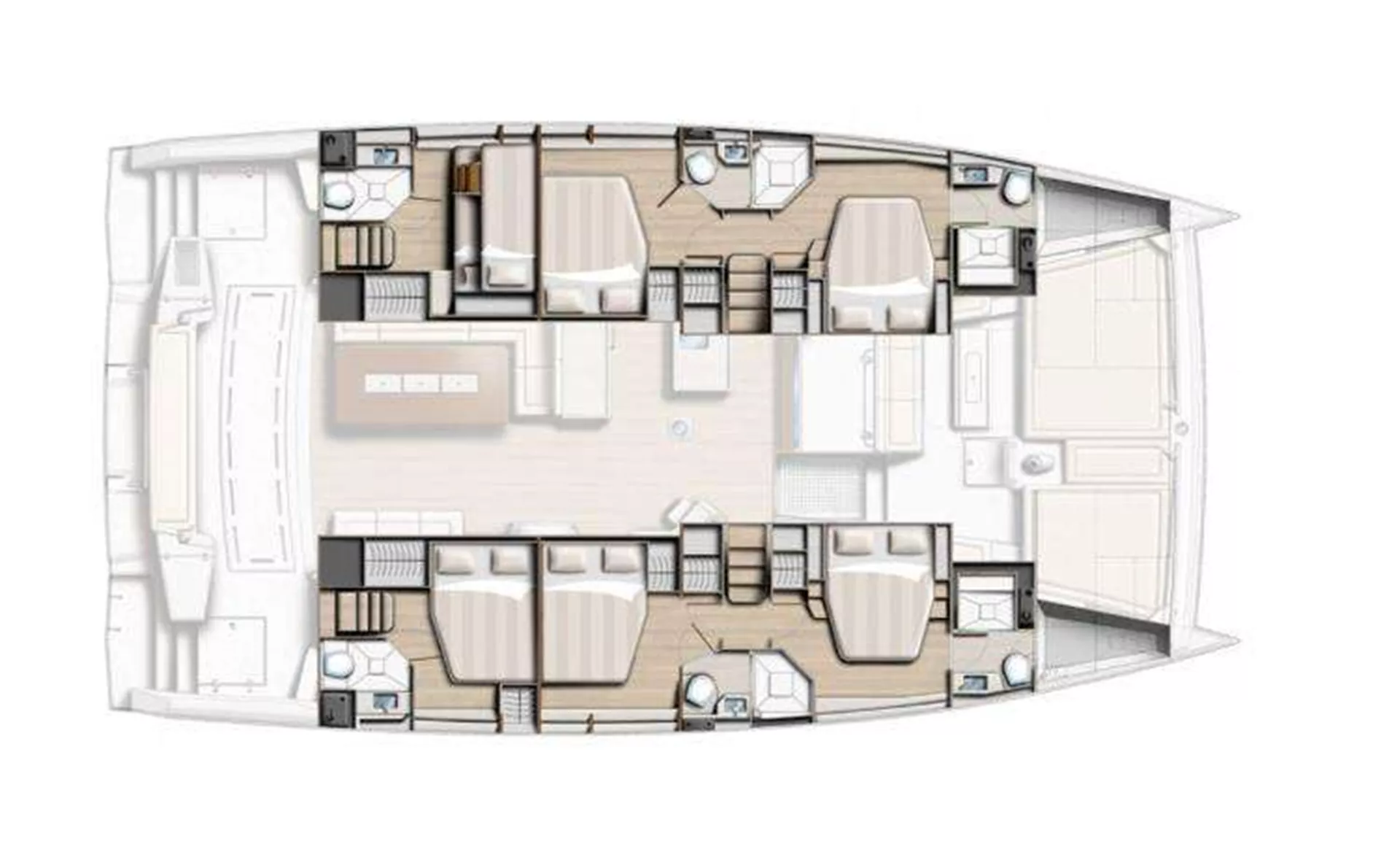 10 guests in 5 double cabins with en-suite facilities
