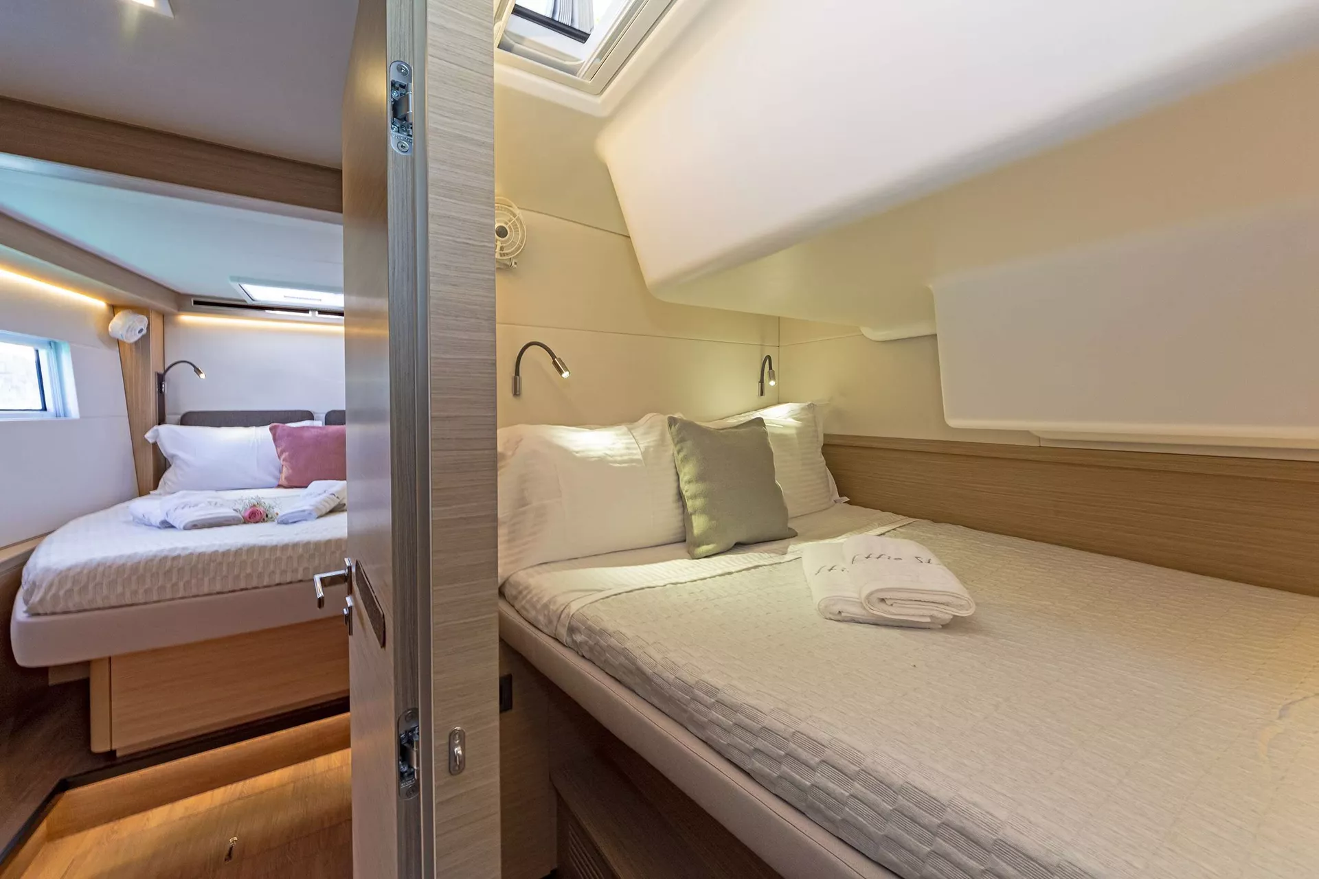 10 guests in 4 double cabins, all with en-suite facilities & 1 French double that shares bathroom