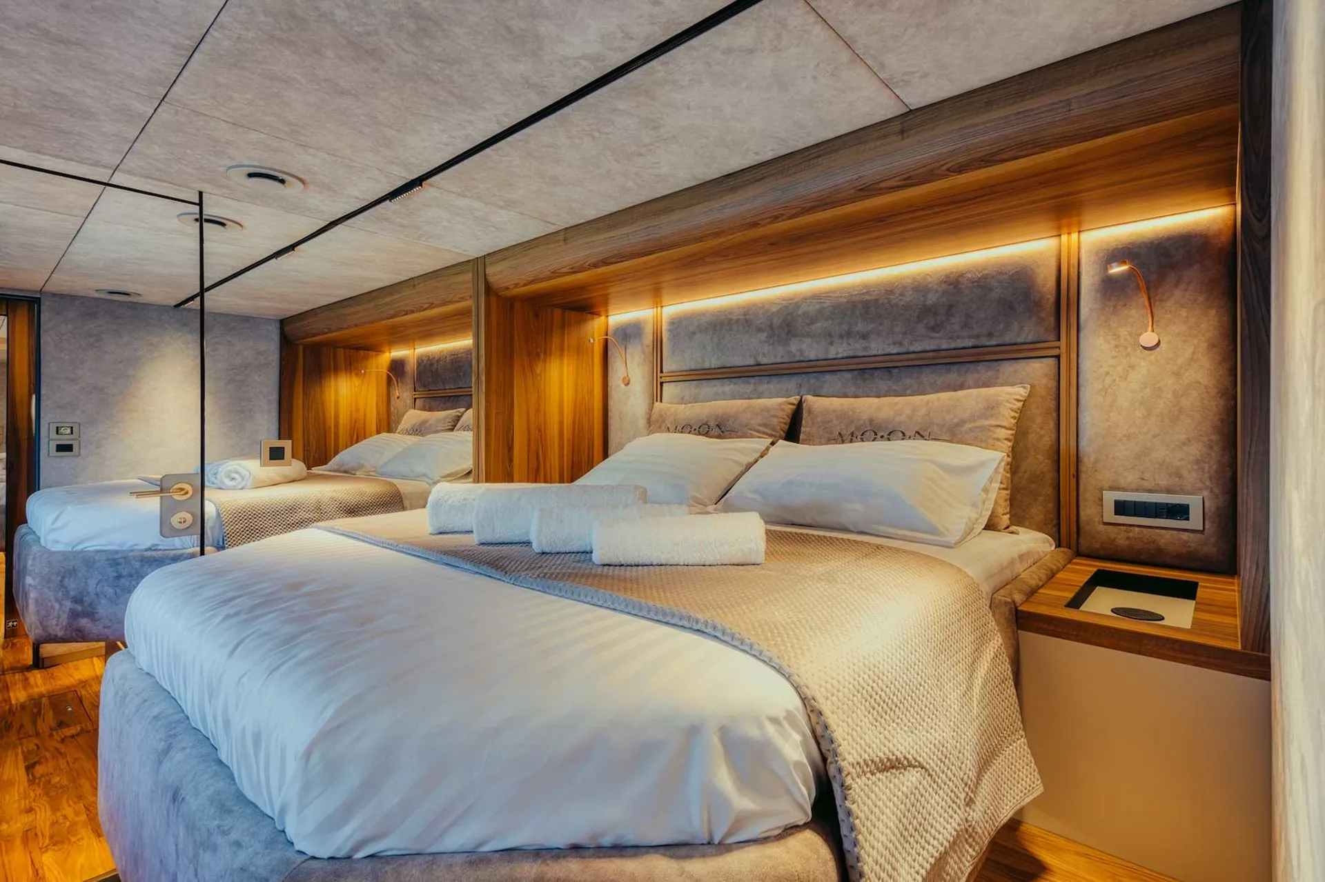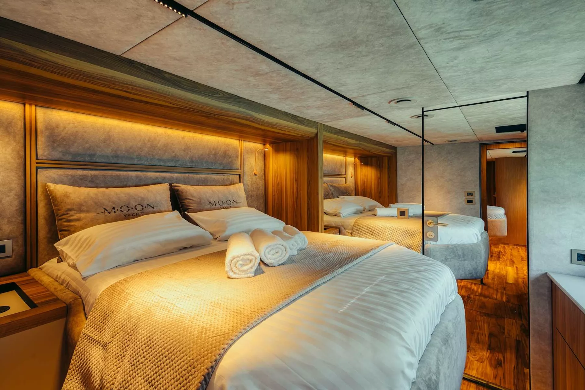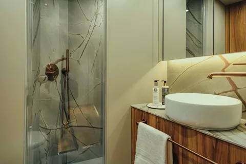 1 owner's cabin, 1 VIP cabin, 2 guest cabins , each with private bathroom