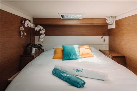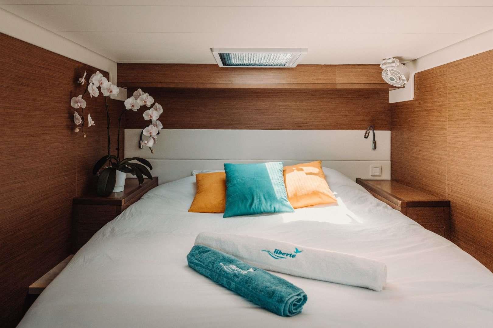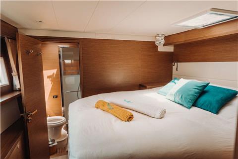 The 4 double cabins, with ensuite bathrooms, are bathedin light thanks to the large portholes along the hulls.