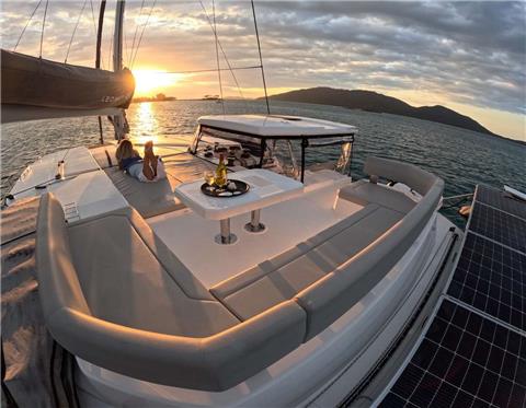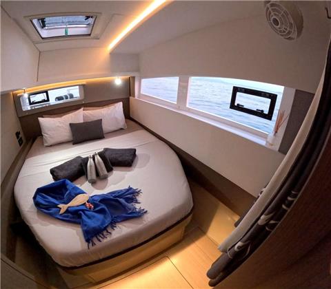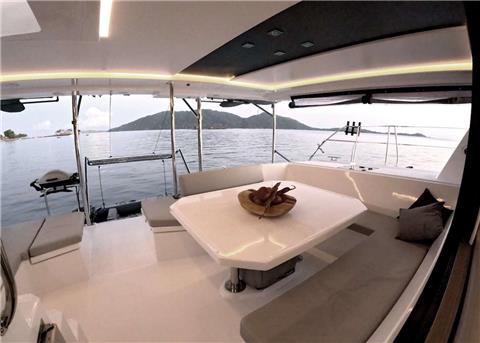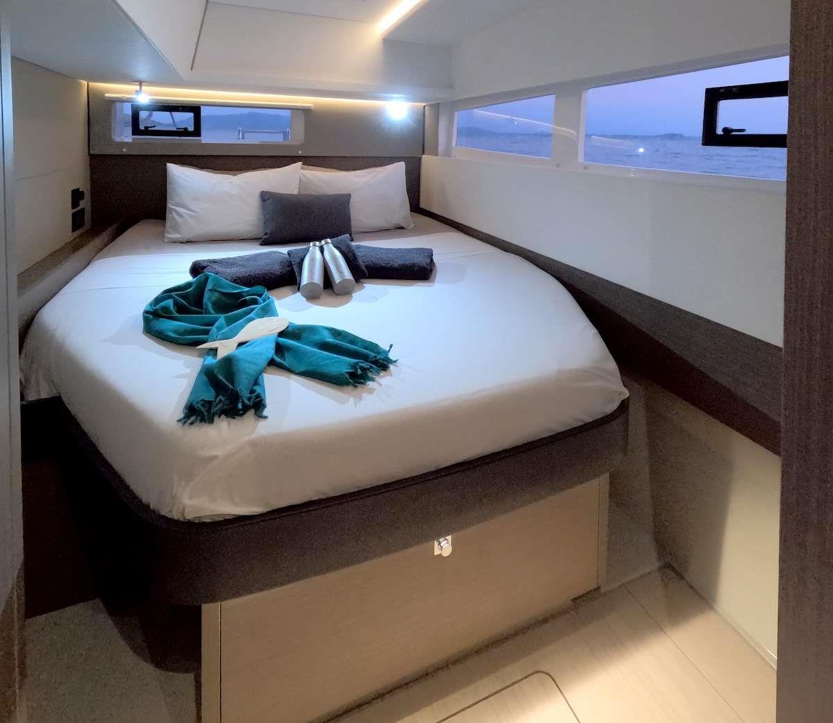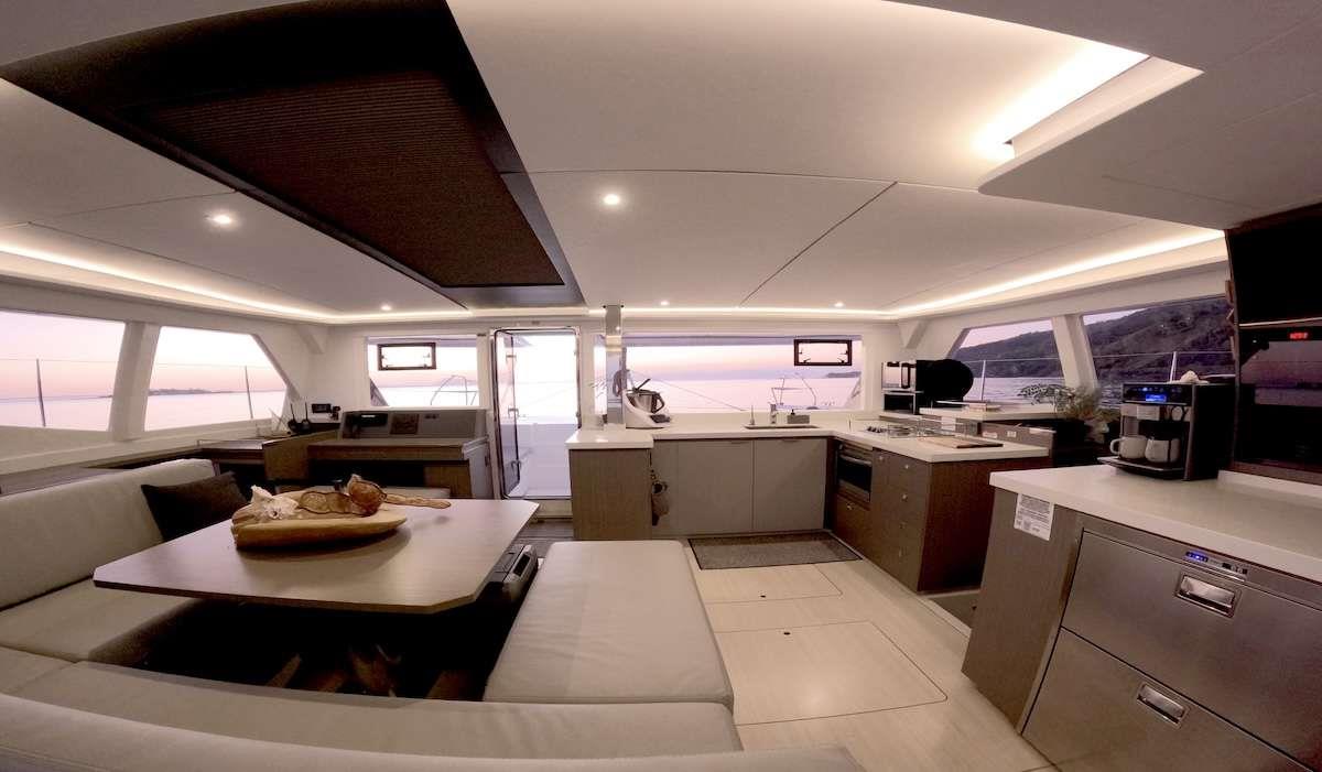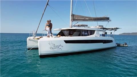 Liquid Coconut is a stunning Leopard 45, launched in 2023, embodying Leopard’s reputation for spaciousness, sturdiness, and remarkable sailing performance. The latest design upgrades provide a perfect balance of comfort and convenience for both crew and guests. The fully opening sliding doors of the main saloon create an expansive, uninterrupted flow between the aft cockpit and the salon, allowing guests to enjoy the yacht’s generous space to the fullest.
