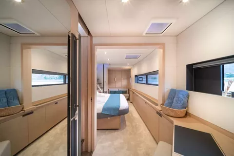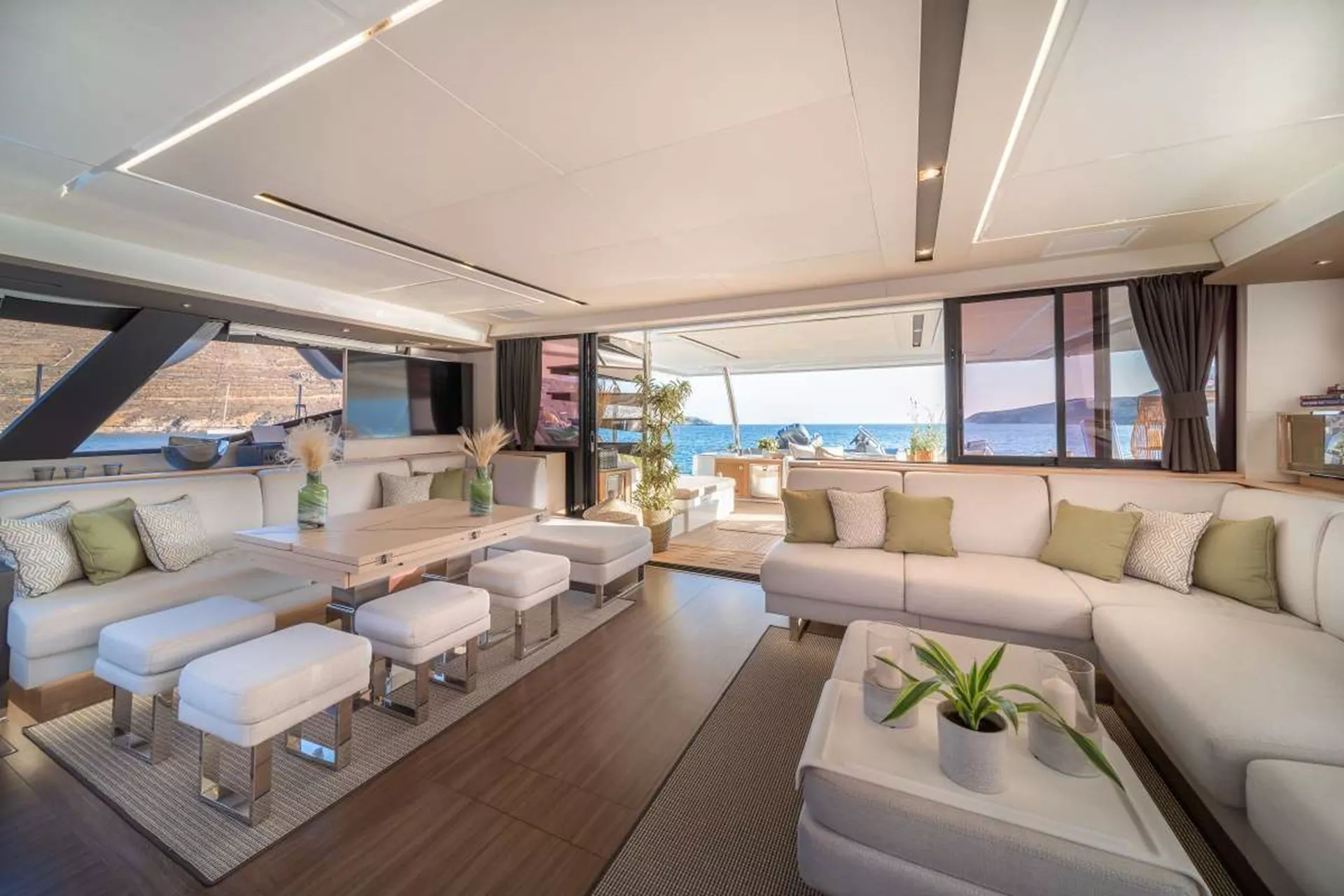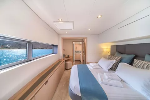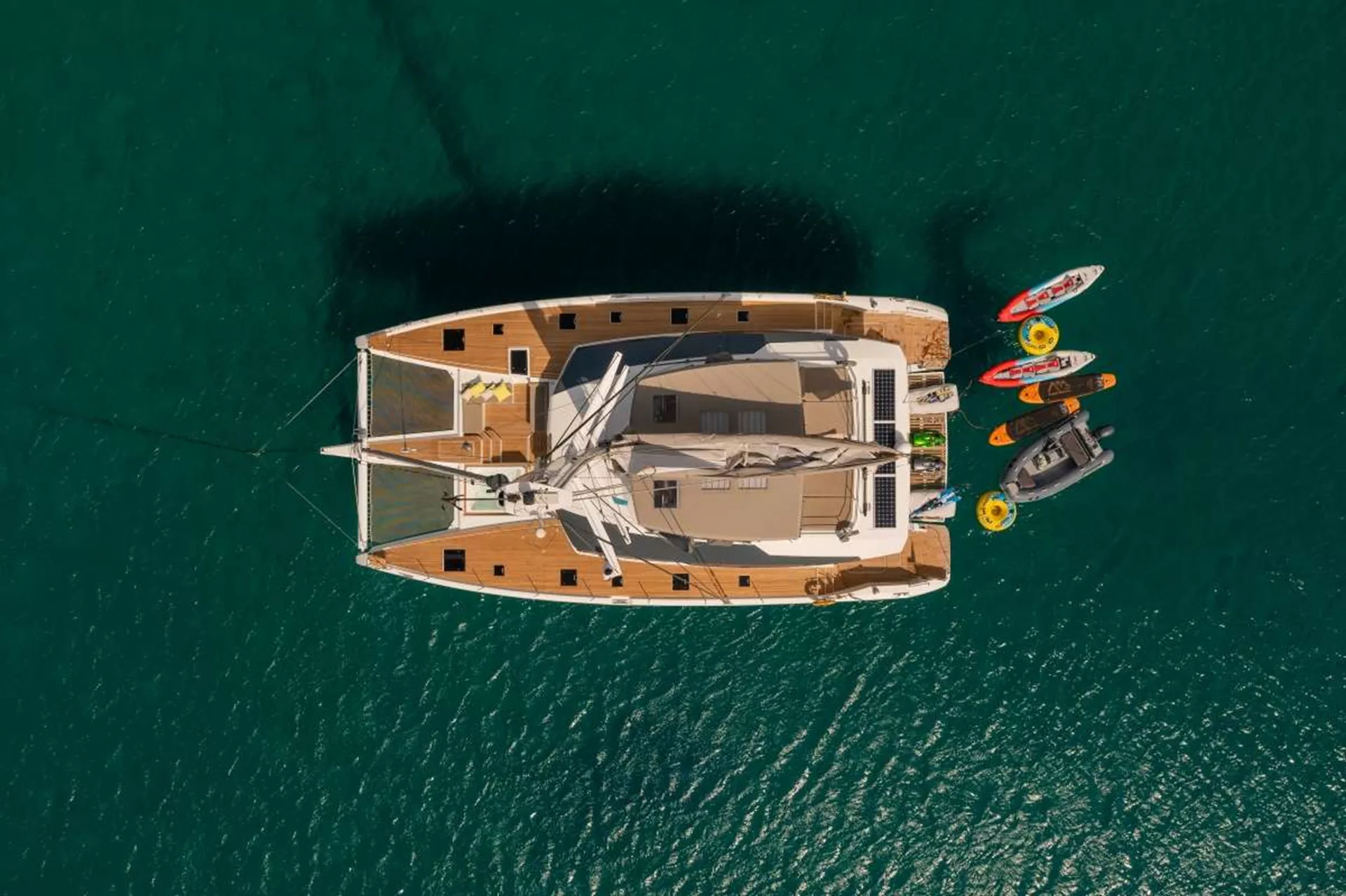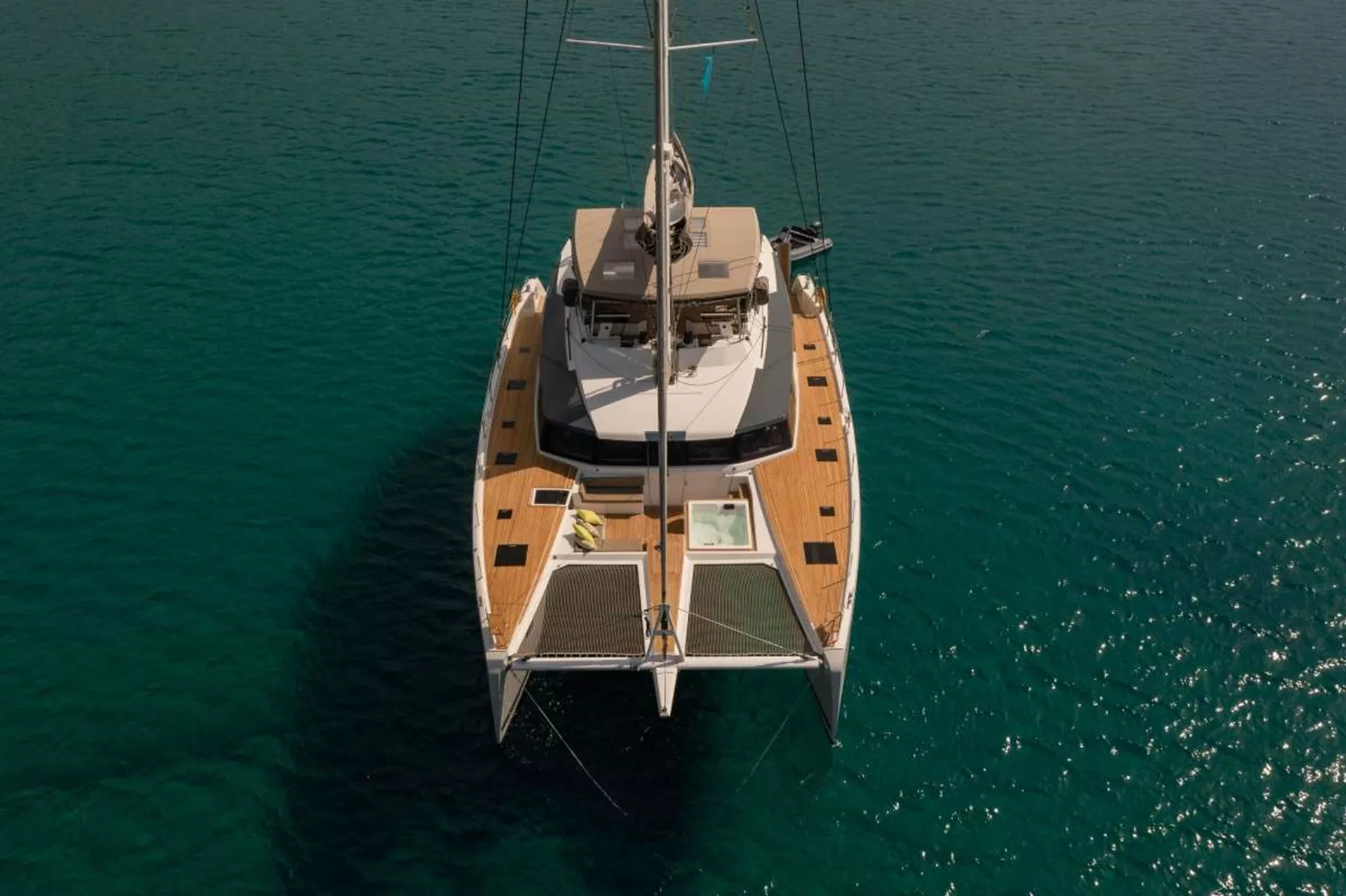 S/Y AETHER epitomizes luxury in a catamaran. Featuring an expansive flybridge with an authentic ocean terrace and a forward cockpit with a jacuzzi, she offers unparalleled comfort and style. Whether you’re seeking the thrill of sailing or the tranquility of lounging on sunbathing beds, S/Y AETHER provides the perfect setting.