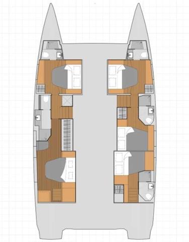 1 owner’s suite + 1 bathroom / 4 double cabins + 4 bathrooms