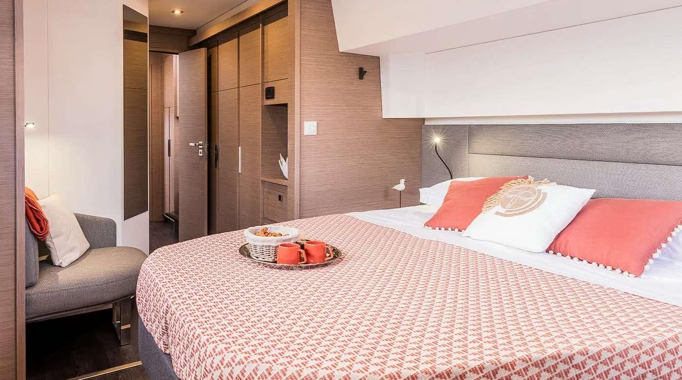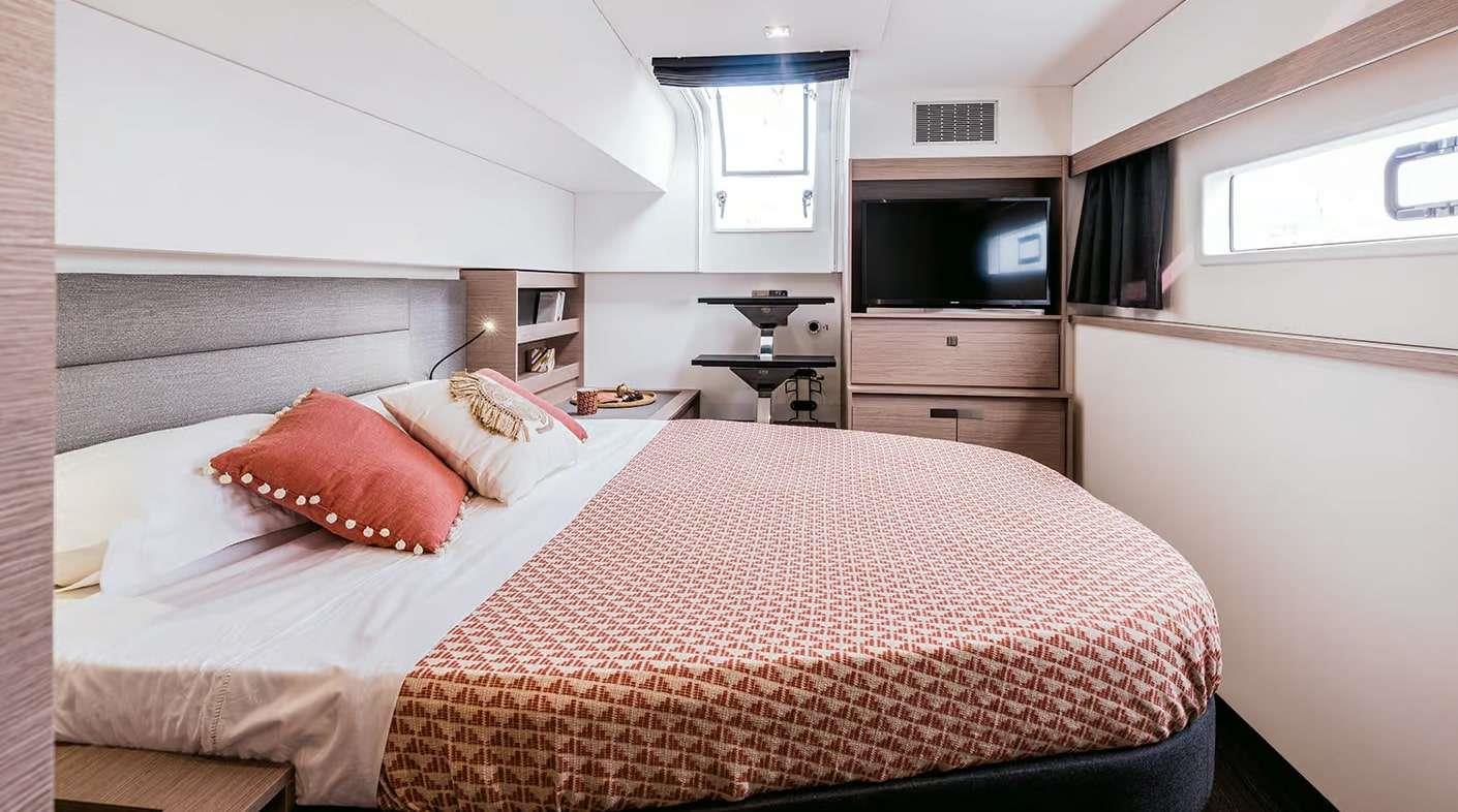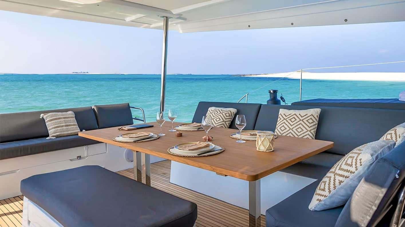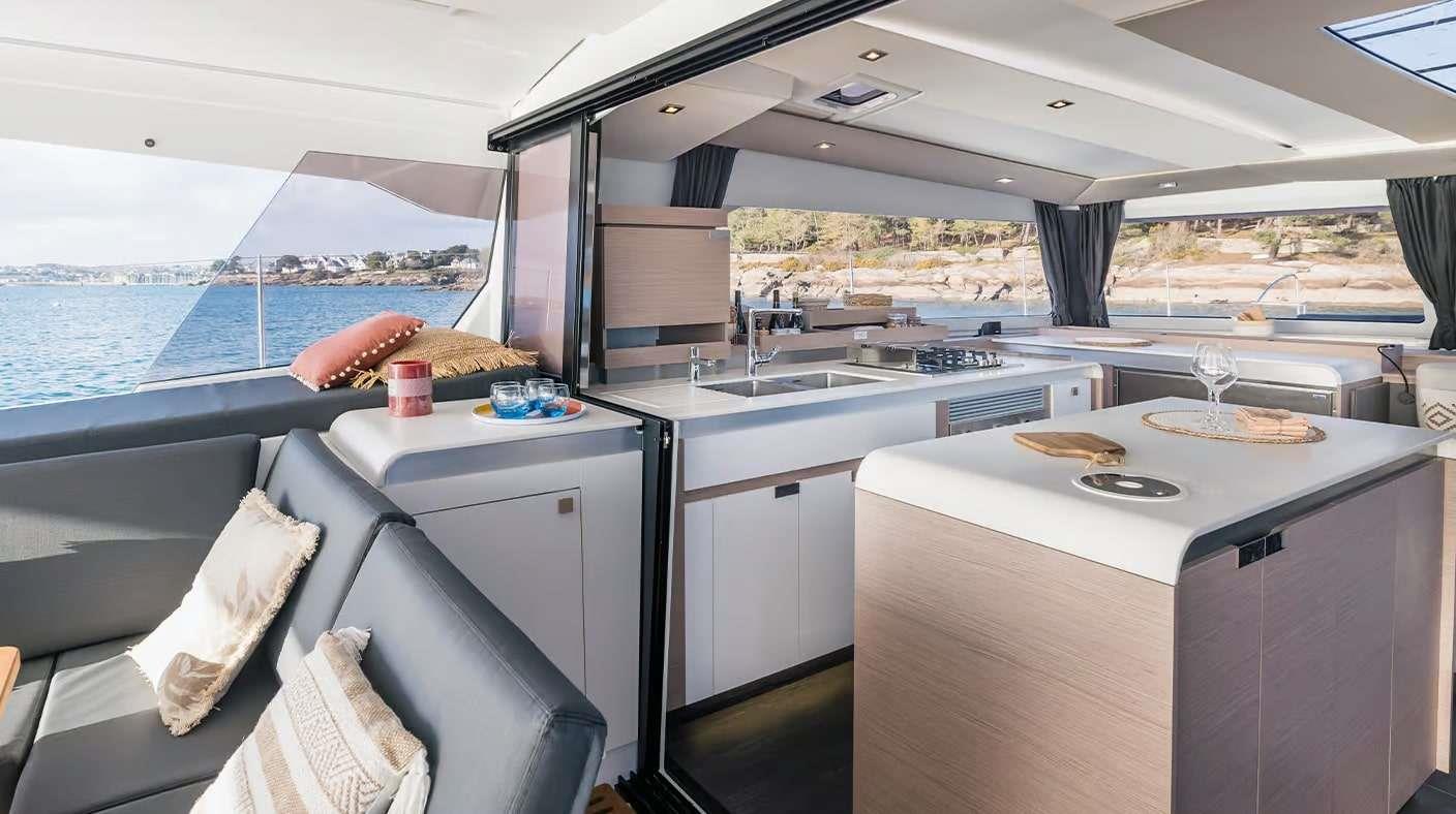 S/Y Kebisiks is a stunning 2025 Fountaine Pajot Aura 51 catamaran, epitomizing modern luxury and innovative design.
