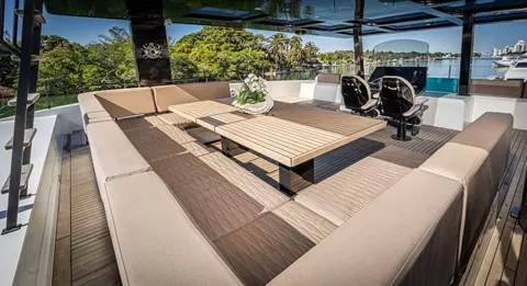 From expansive deck areas to sleek, state-of-the-art interiors, Island Majesty offers an unparalleled charter experience. Each moment aboard is designed to indulge and captivate, creating cherished memories on the water.