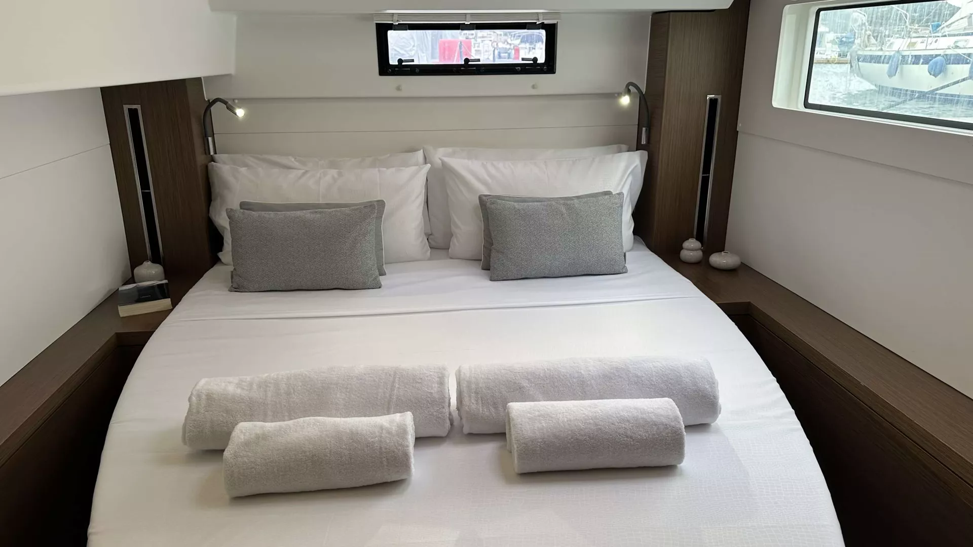 The skipper has a separate cabin and bathroom in the bow compartment.