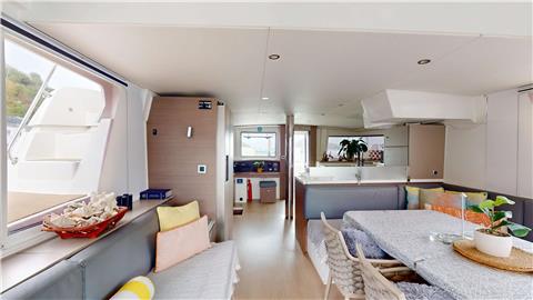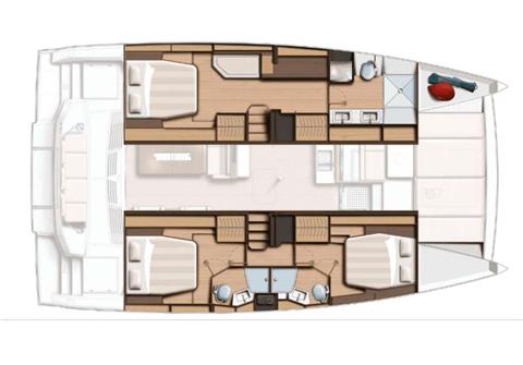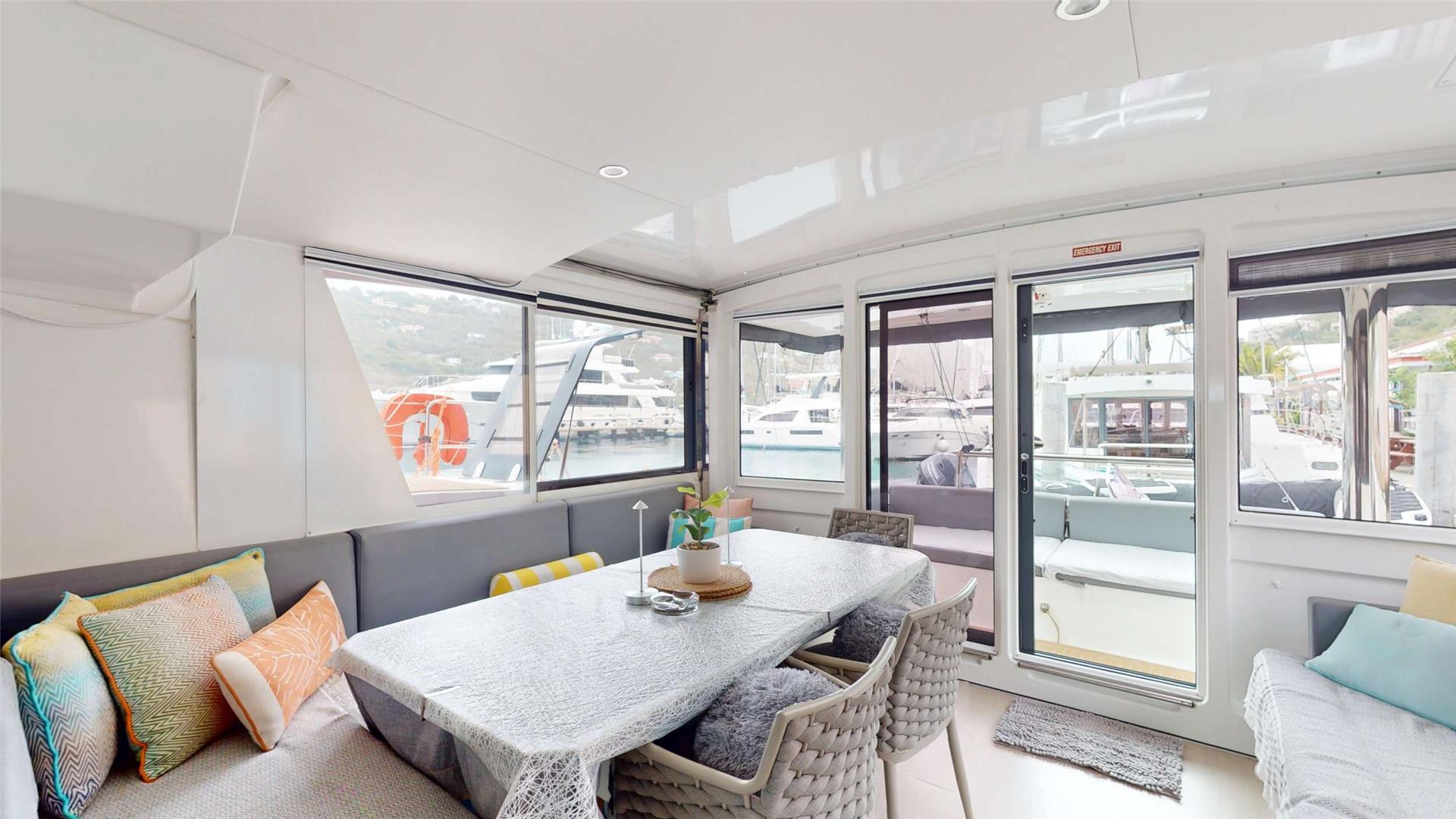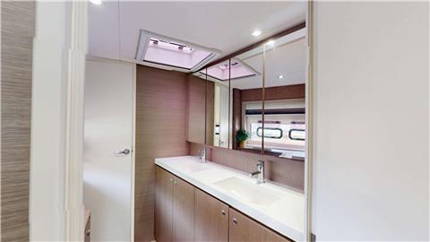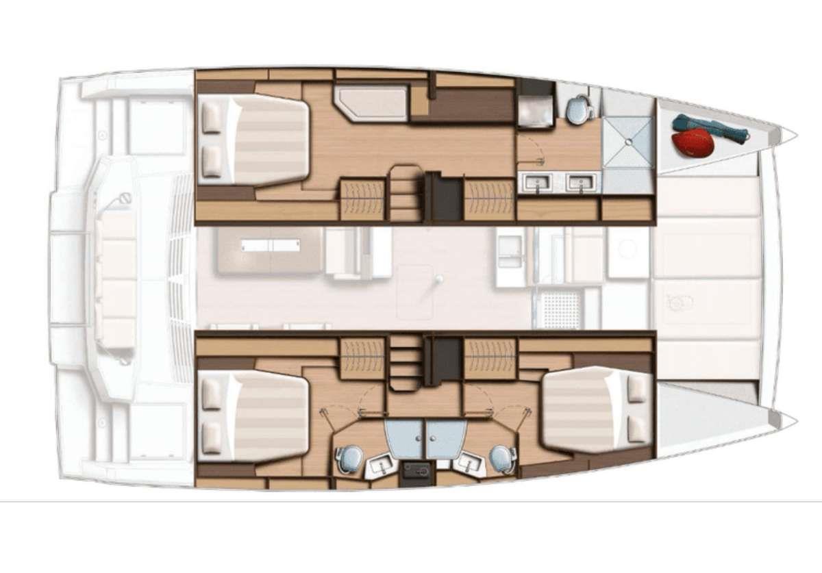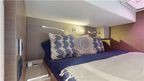 My Marina offers three guest cabins, including a spacious master suite that occupies the entire port hull. The additional two guest cabins are located in the starboard hull, each thoughtfully designed for comfort and privacy—perfect for families or friends sharing an unforgettable Caribbean yacht charter experience.