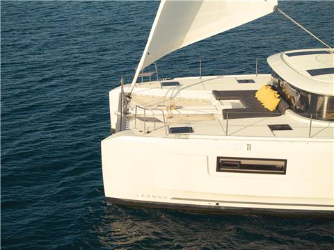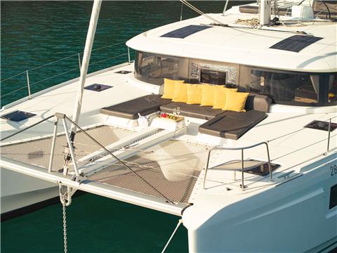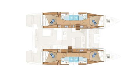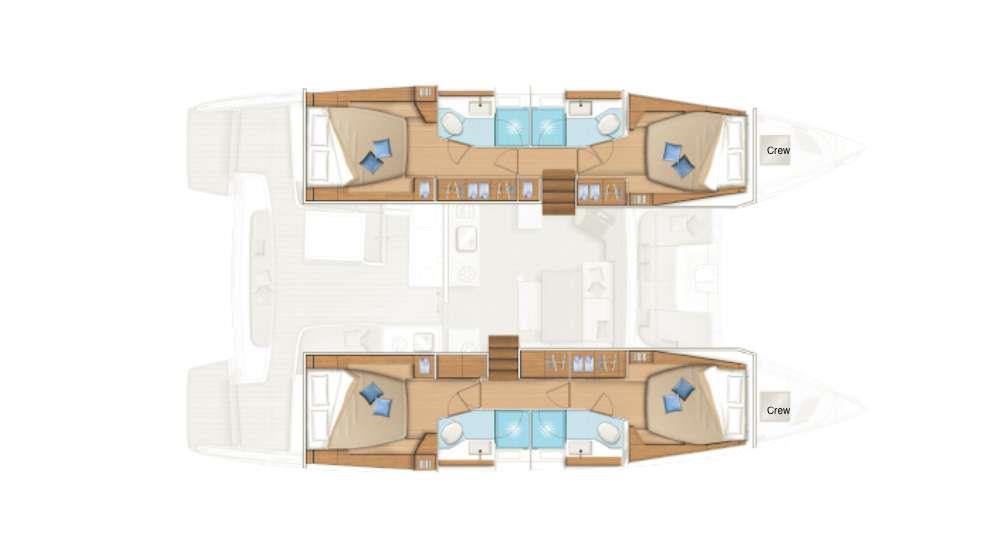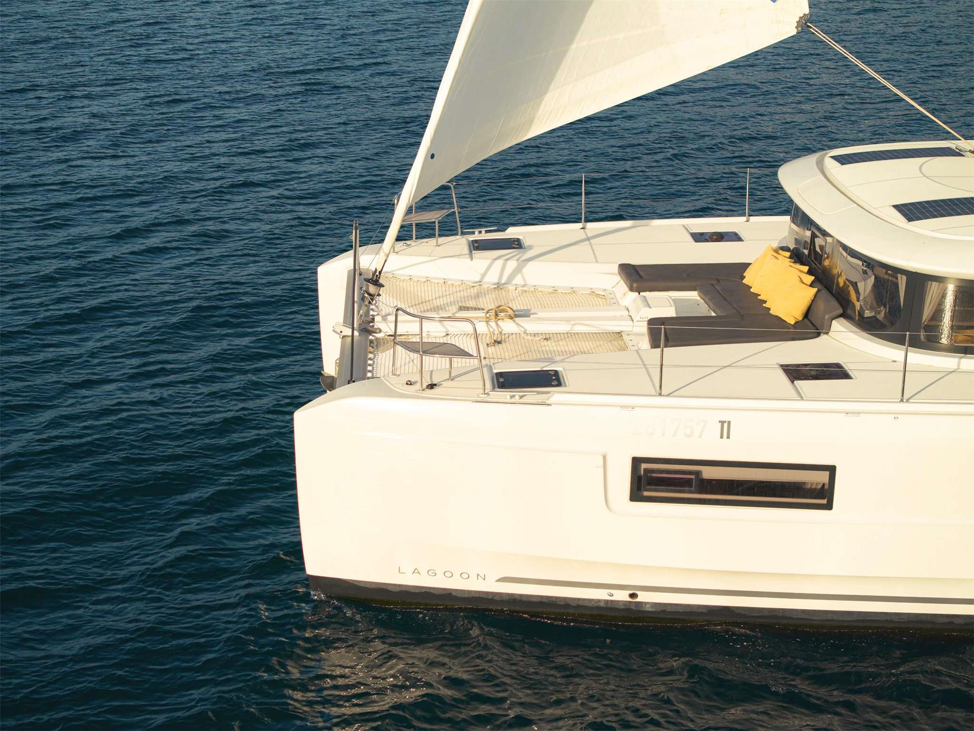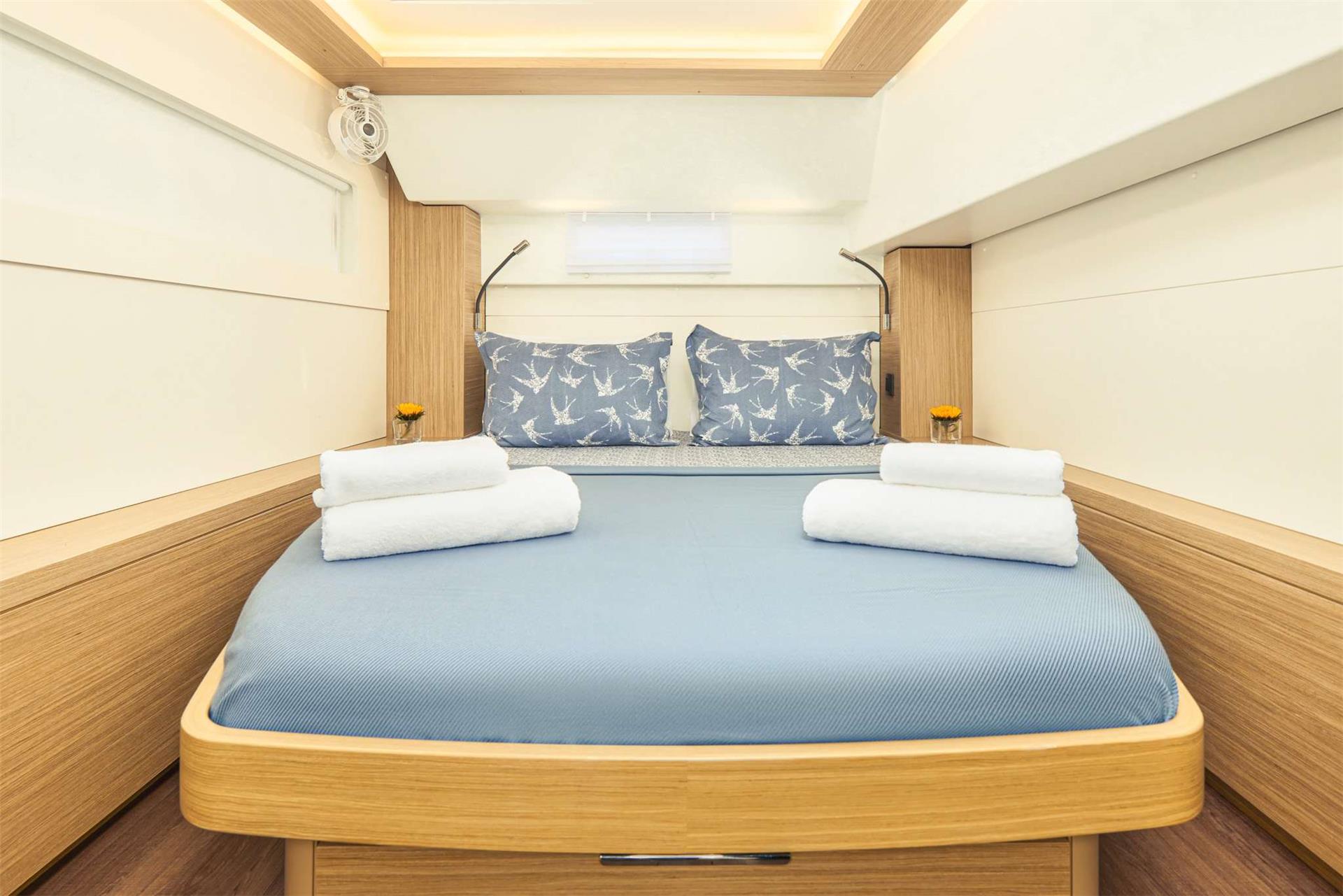 Built by the renowned Lagoon Catamarans, Lagoon 46 Naya is equipped with the latest amenities to ensure comfort and style at sea. The catamaran features four spacious double cabins, each with en-suite bathrooms, providing privacy and relaxation for all guests. The vessel is operated by a professional two-member crew, including a skilled skipper and a chef/steward, who ensure a seamless and personalized experience throughout your journey.