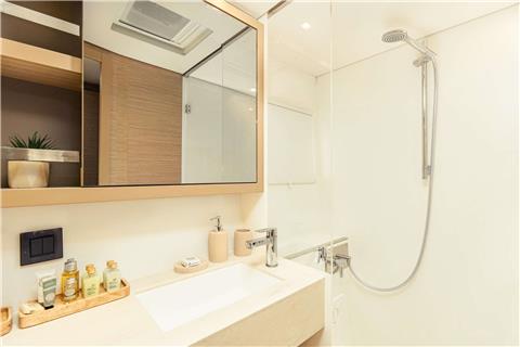 Onboard, you’ll find expansive sun decks with a seating area at the front, a cockpit dining area at the back for al fresco meals, and an elegant indoor saloon with a smartly designed galley and additional dining space. Every detail has been carefully thought out to combine luxury, comfort, and functionality, creating the perfect setting for your sailing adventure in Lagoon 46 Croatia.
