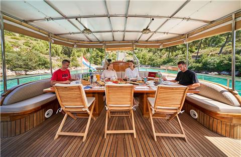 All-inclusive beverages package - includes Croatian quality wines, beers, spirits, soft drinks, natural and mineral water, coffee, tea, and juices: 280 € pax/week, 40 € pax/day.