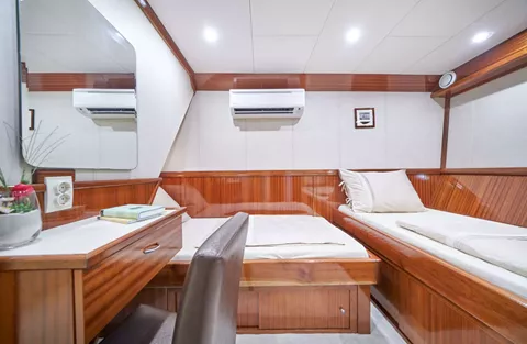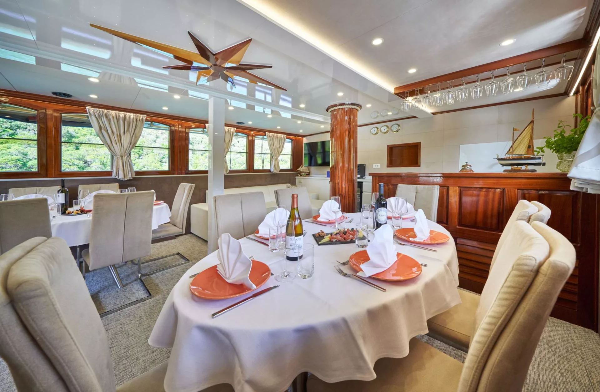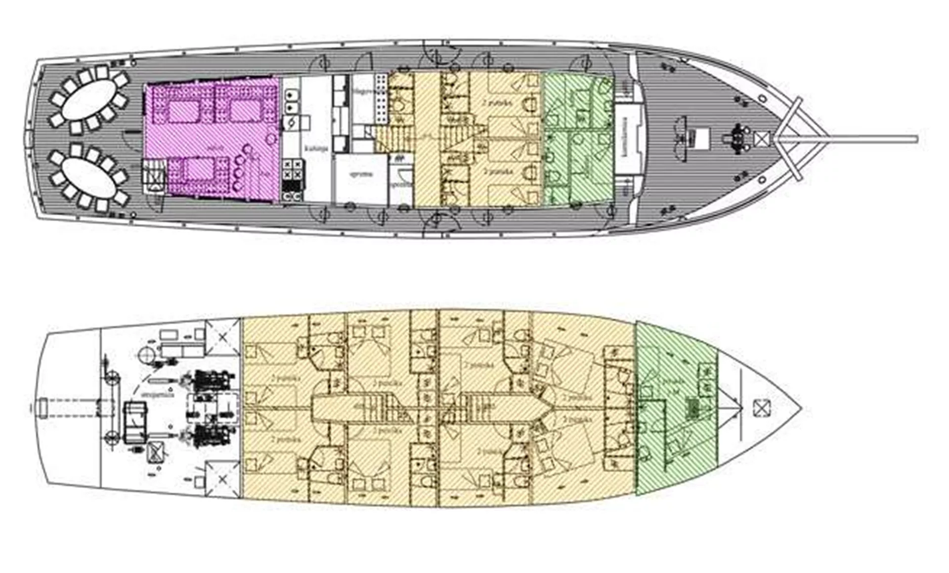 Includes: Accommodation for a maximum of 18 guests in 9 cabins, the crew of 6 and their expenses, insurance of the vessel and the crew, fuel for 4 h of engine work daily, generator work 24/7, fuel for tender transfers to/from the vessel, use of recreational equipment (SUP, kayak, snorkeling gear), tourist taxes, Wi-Fi, VAT of 13%.